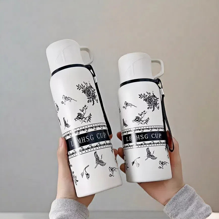 새로운 316 스테인레스 스틸 치자 보온병 컵 높은 색상 가치 큰 용량 여자 물 컵 편리한 스포츠 보온병 냄비