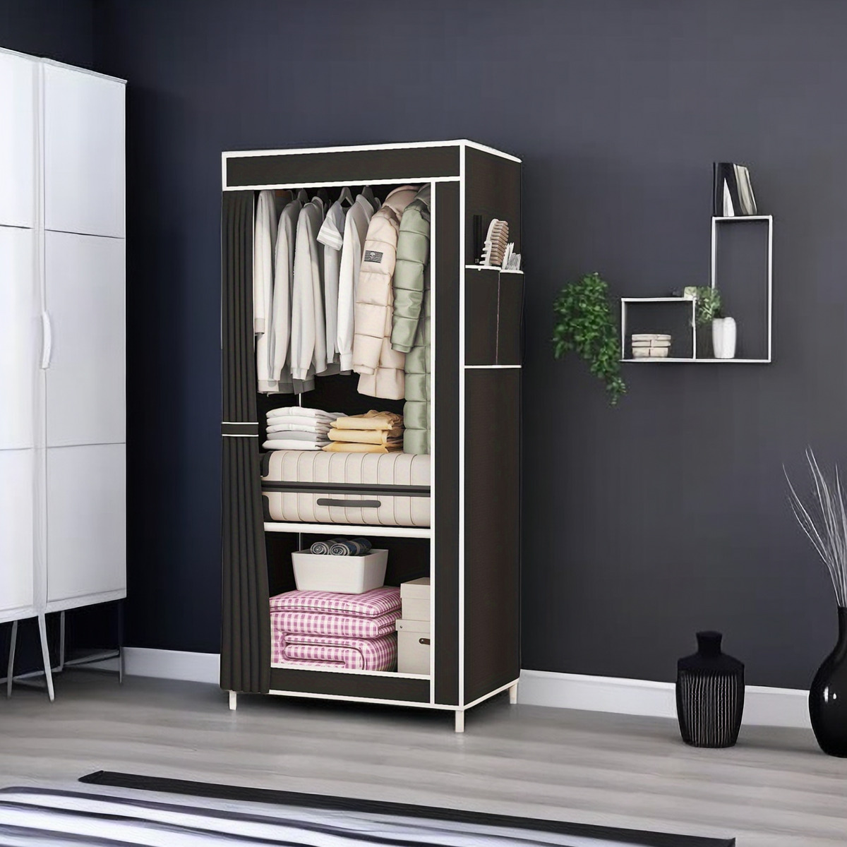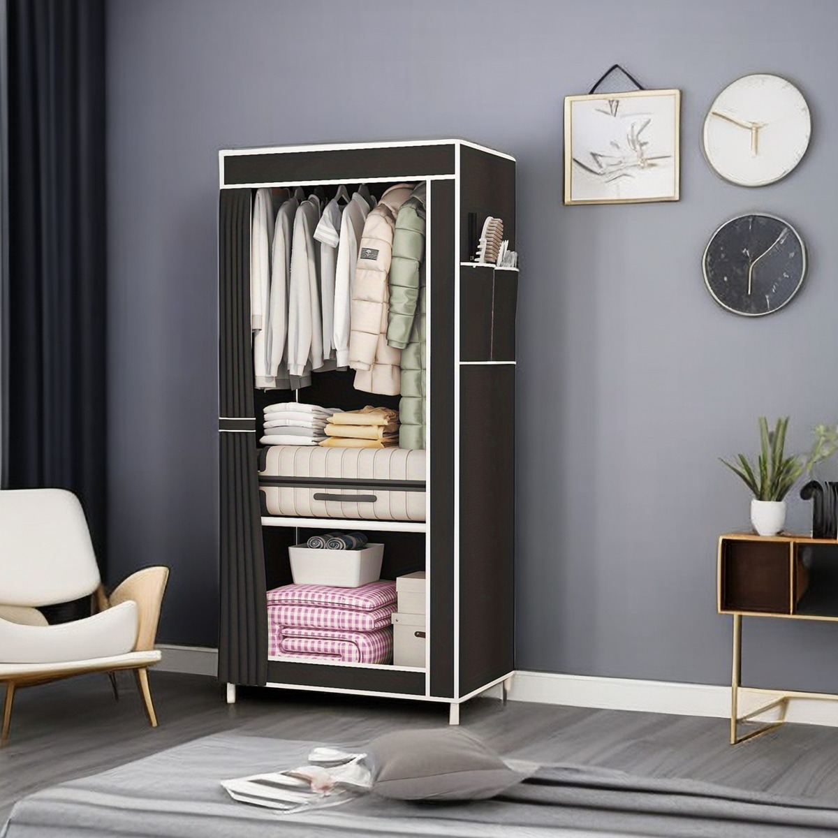 • 검은 천 커버 옷장