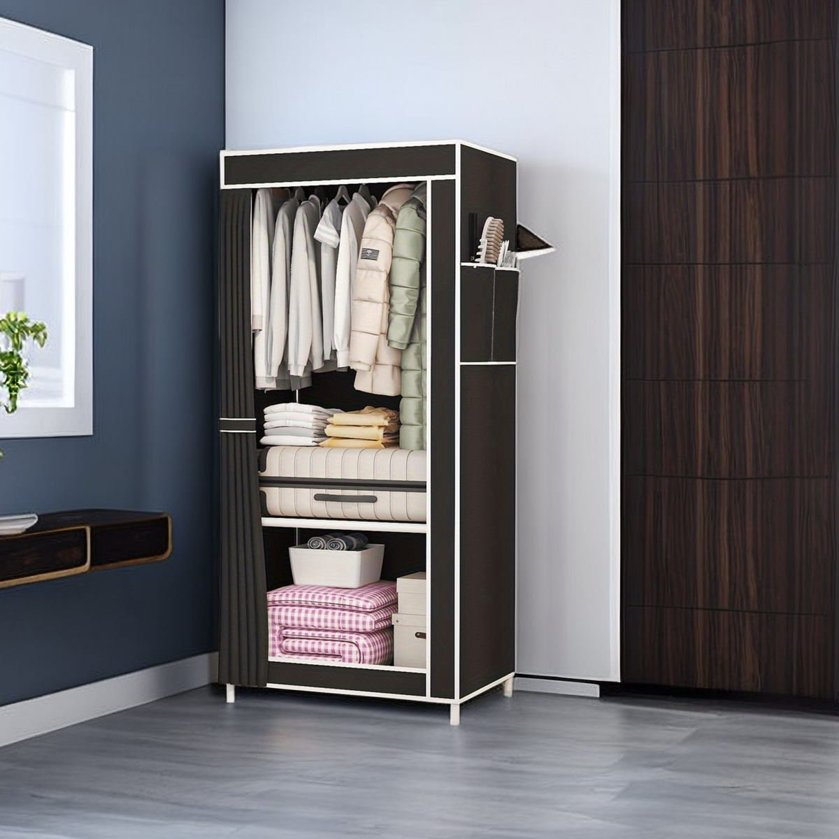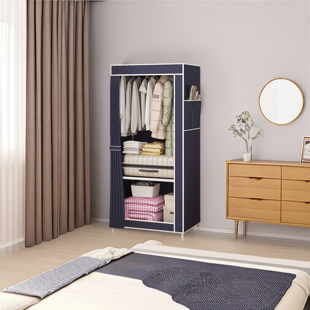 • 네이비 블루 천 커버 옷장