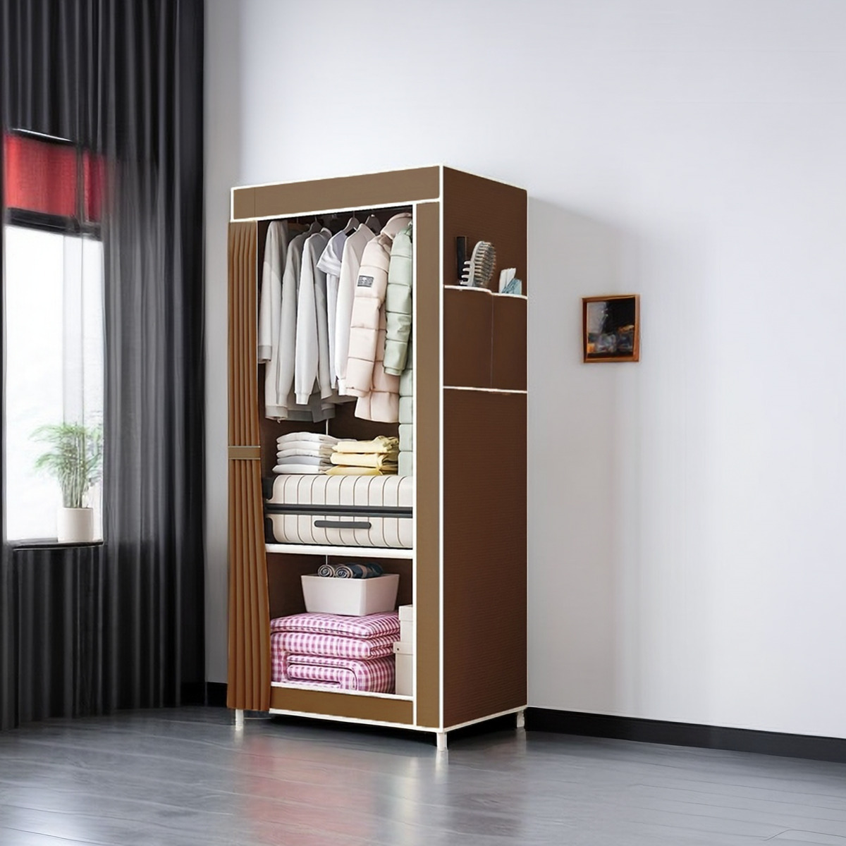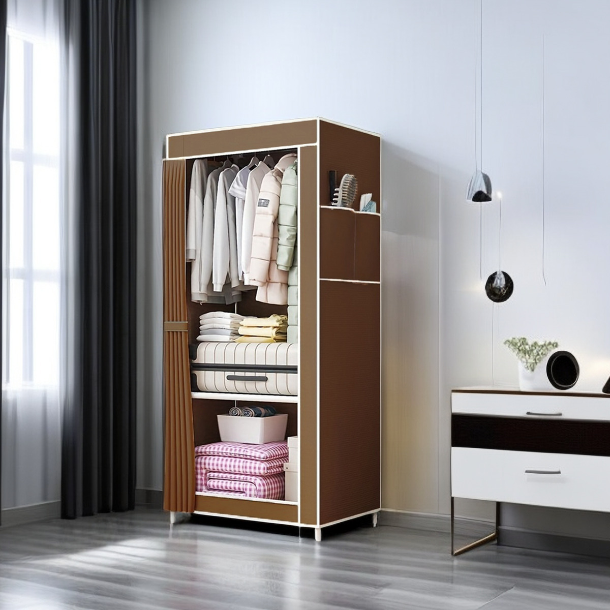 • 갈색 천 커버 옷장