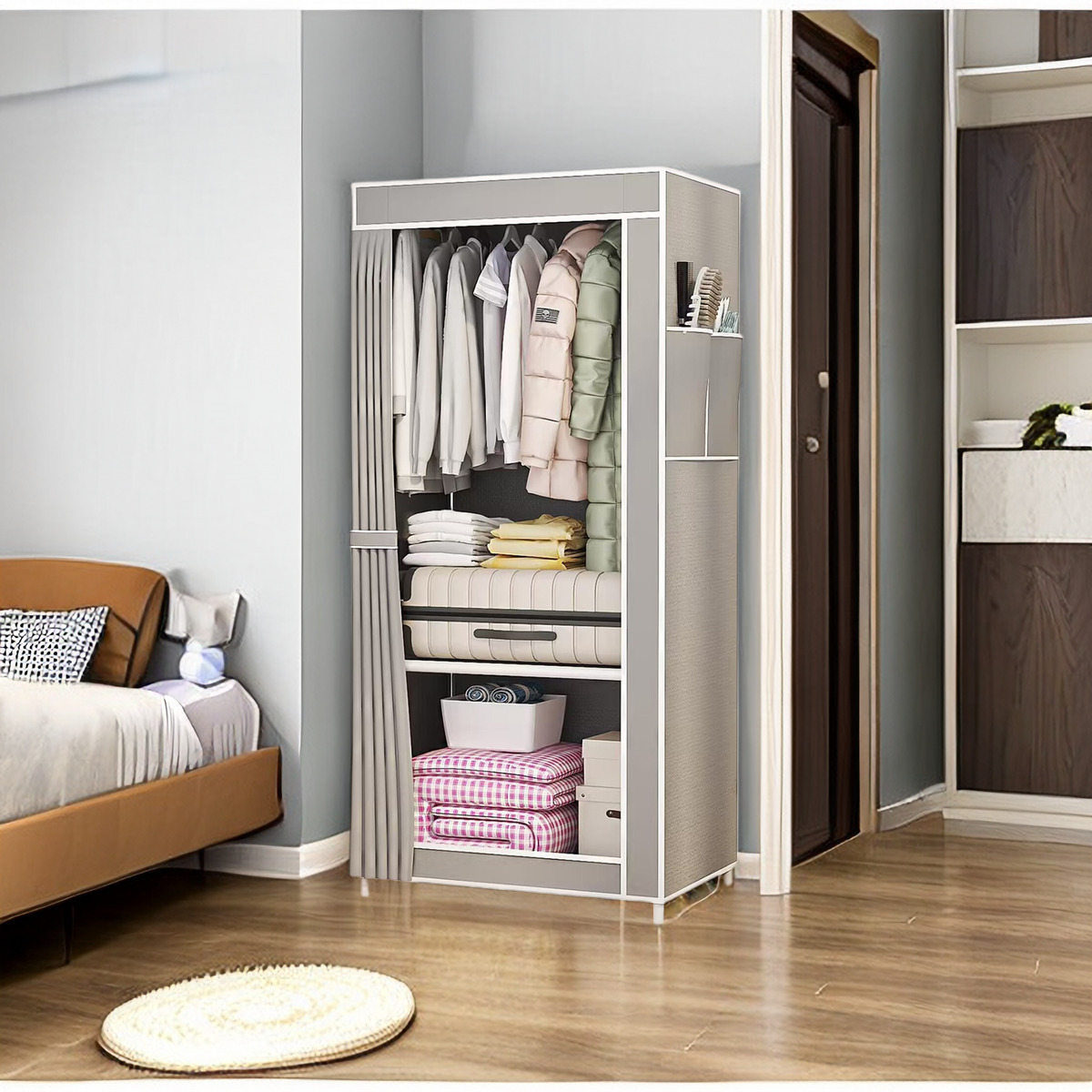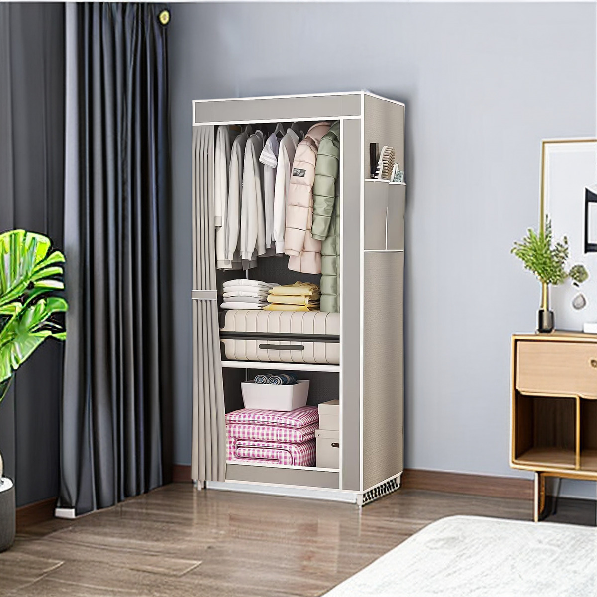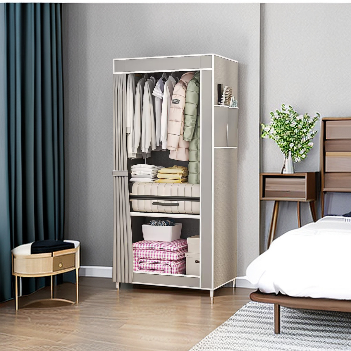 • 회색 천 커버 옷장
