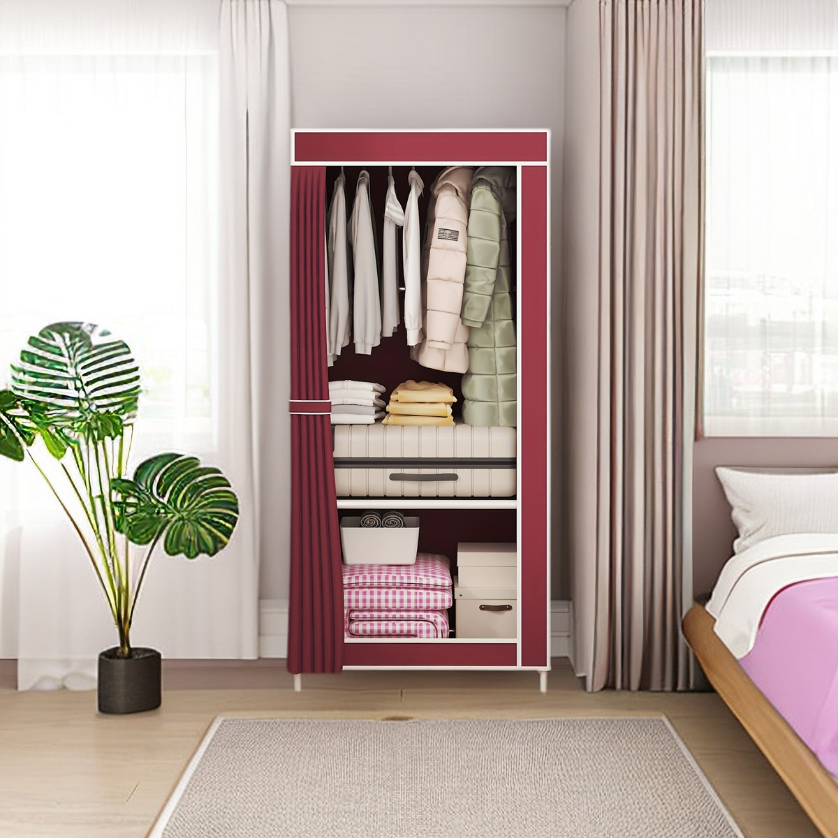 • 부르고뉴 천 커버 옷장