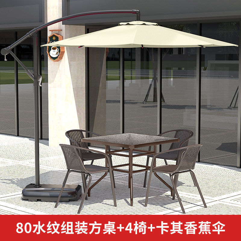 • 80 물무늬 조립 사각 테이블 + 의자 4개 + 카키 바나나 우산