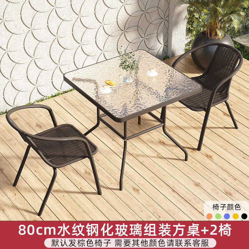 • 80cm 물무늬 강화유리 조립 사각 테이블 + 의자 2개