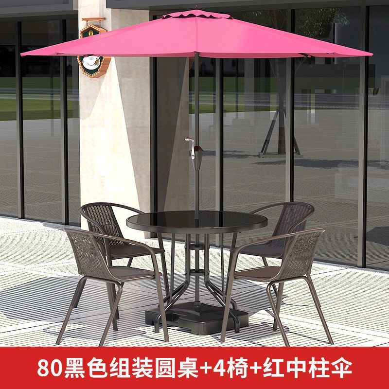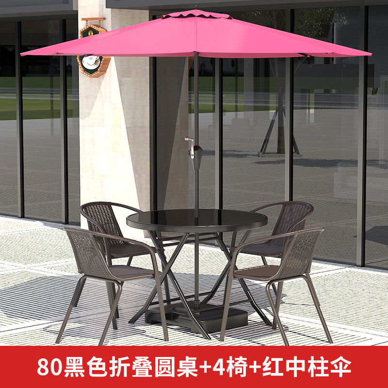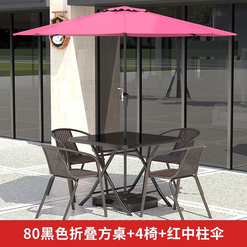 • 80 검정색 접이식 원형 테이블 + 의자 4개 + 빨간색 중간 기둥 우산