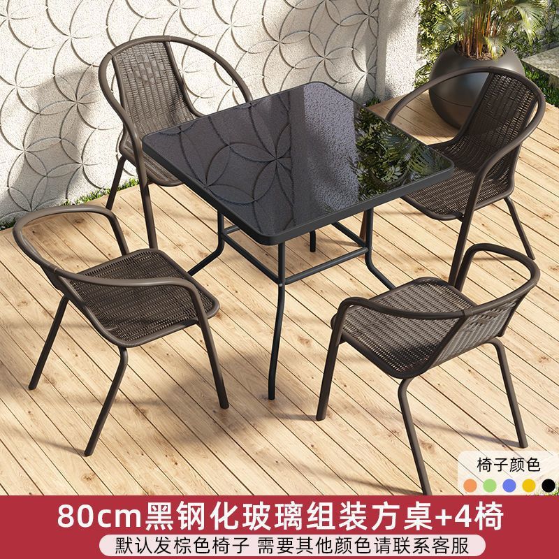 • 80cm 검정색 강화유리 조립 사각 테이블 + 의자 4개