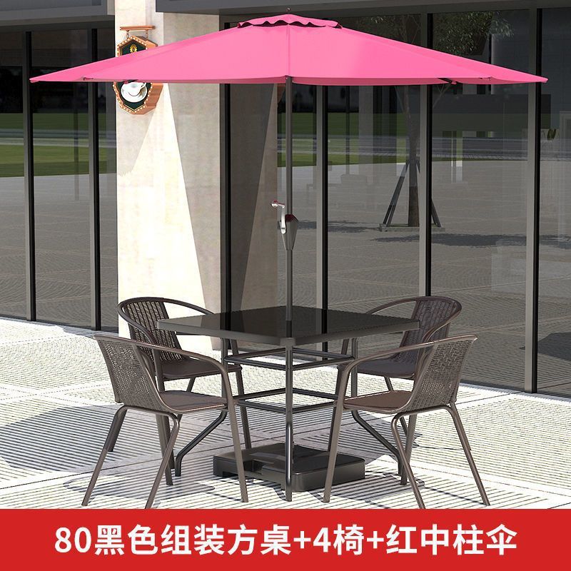 • 80 검정색 조립 사각 테이블 + 의자 4개 + 빨간색 중간 기둥 우산