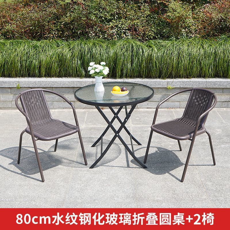 • 80cm 물무늬 강화유리 접이식 원형테이블 + 의자 2개