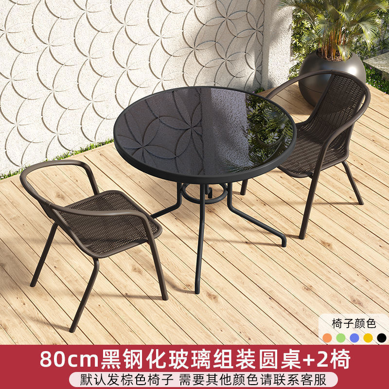 • 80cm 검정색 강화유리 조립 원형 테이블 + 의자 2개
