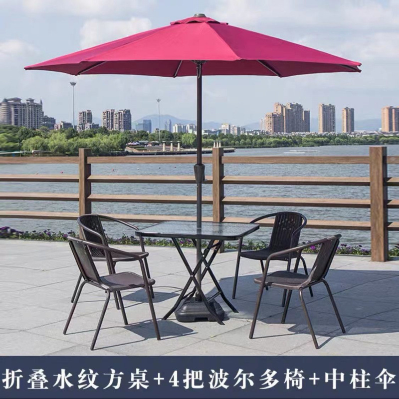 • 120x80 직사각형 테이블 + 의자 4개 + 이중 상단 중앙 기둥 우산