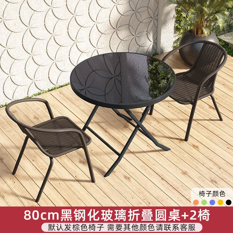 • 80cm 검정색 강화유리 접이식 원형 테이블 + 의자 2개
