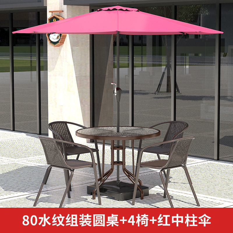 • 80 물무늬 조립 원형 테이블 + 의자 4개 + 빨간색 중간 기둥 우산