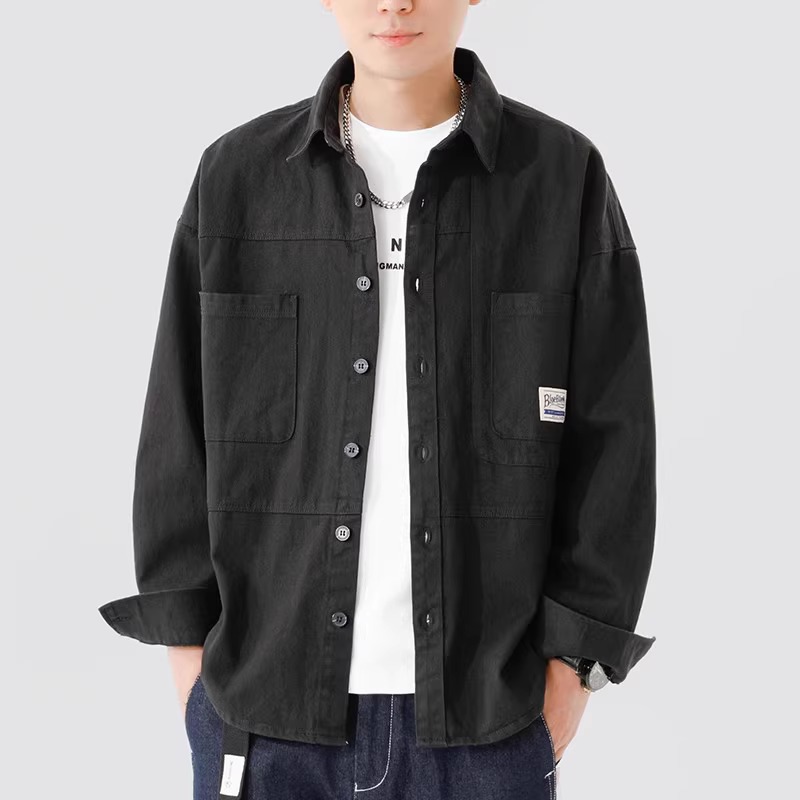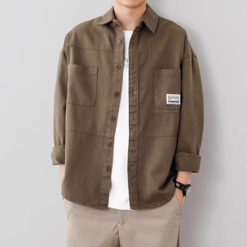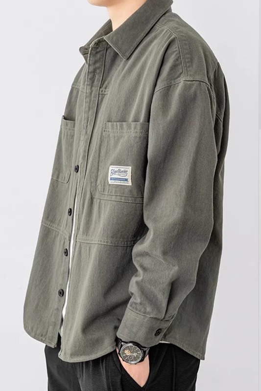 크록 셔츠 재킷 남자의 봄과 가을 느슨한 유행 브랜드 캐주얼 올 매치 탑 솔리드 컬러 카디건 옷깃 재킷 남자스토어 가기
