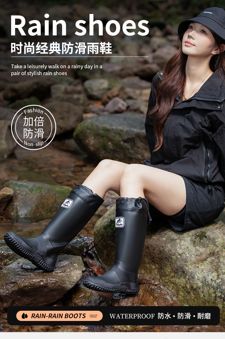 남성용 크로스보더 장화, 하이탑 방수화, 미끄럼 방지 야외 낚시 여성용 두꺼운 워터 부츠, 내마모성 실리콘 신발, 장화스토어 가기