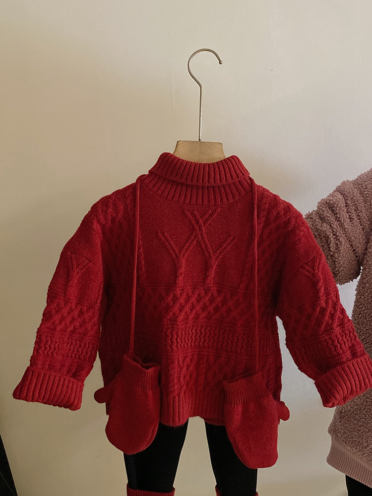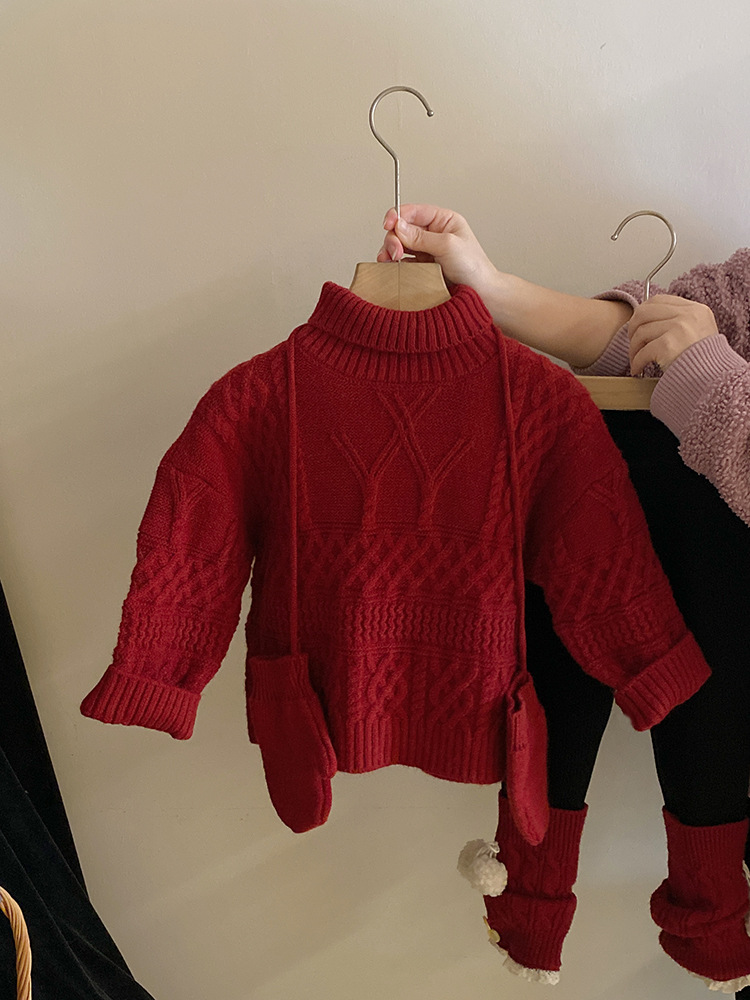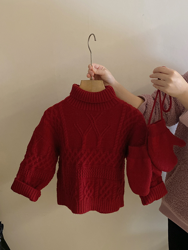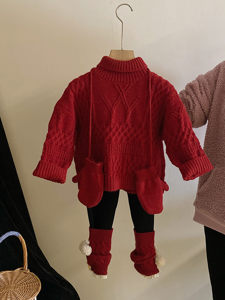여자 서양식 붉은 트위스트 거북이 목 장갑 2024 가을/겨울 새 기모 바느질 레깅스 세트스토어 가기