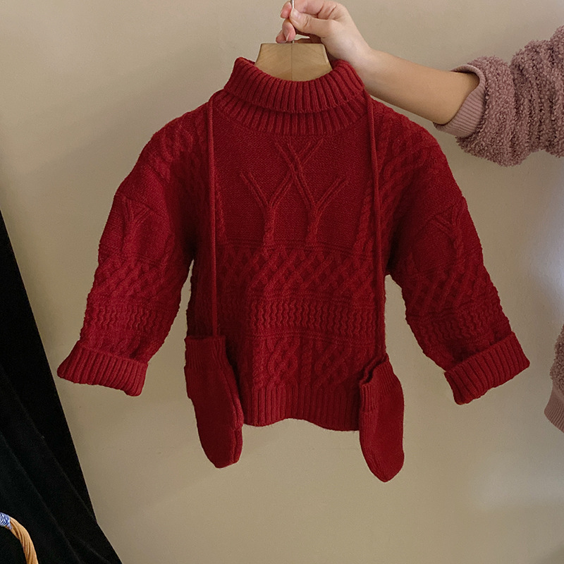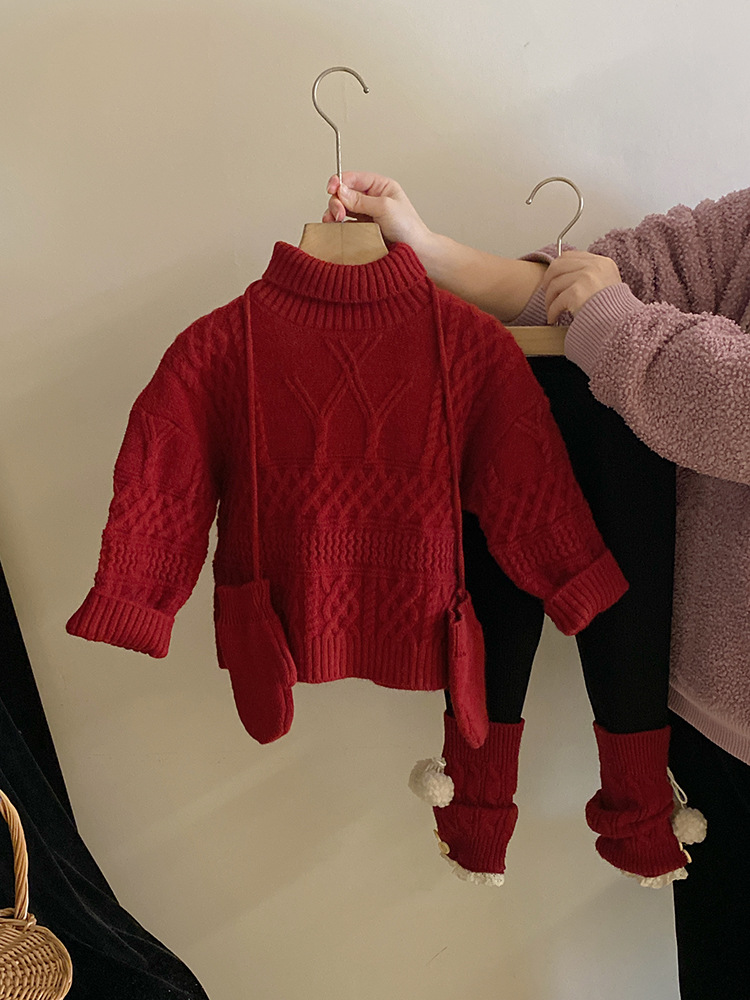 여자 서양식 붉은 트위스트 거북이 목 장갑 2024 가을/겨울 새 기모 바느질 레깅스 세트