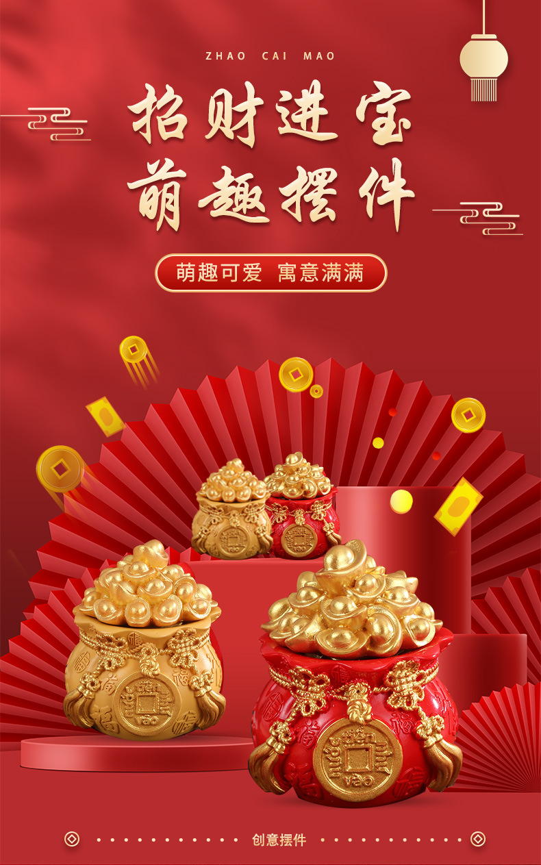 새로운 가정 돈 가방 장식품 수지 공예 돈 롤링 데스크탑 장식 독점 국경