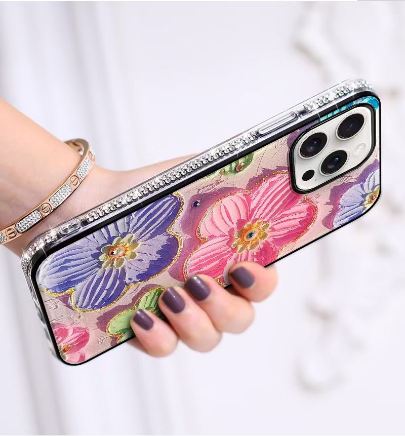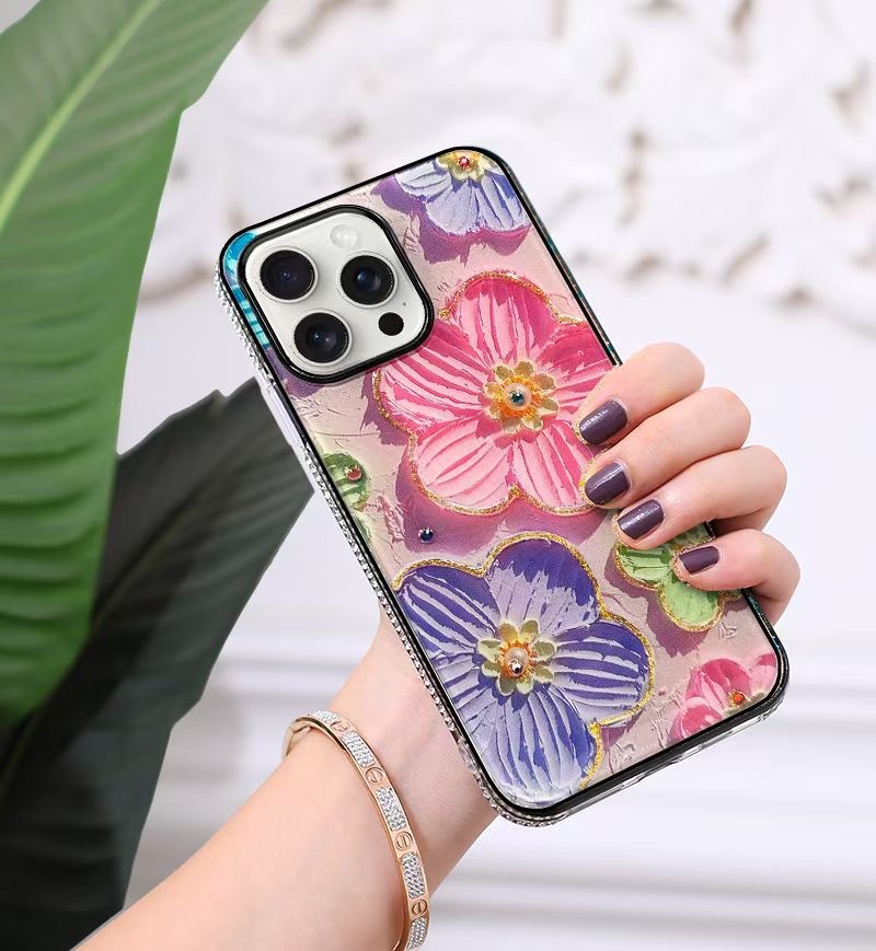 블루 라이트 드릴 유화 동백 16 애플 15promax 전화 케이스 13/14 슬렁 끈 12/11스토어 가기