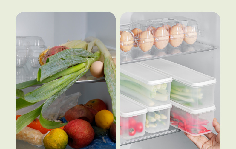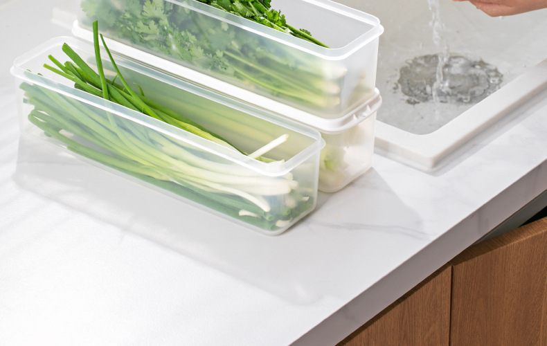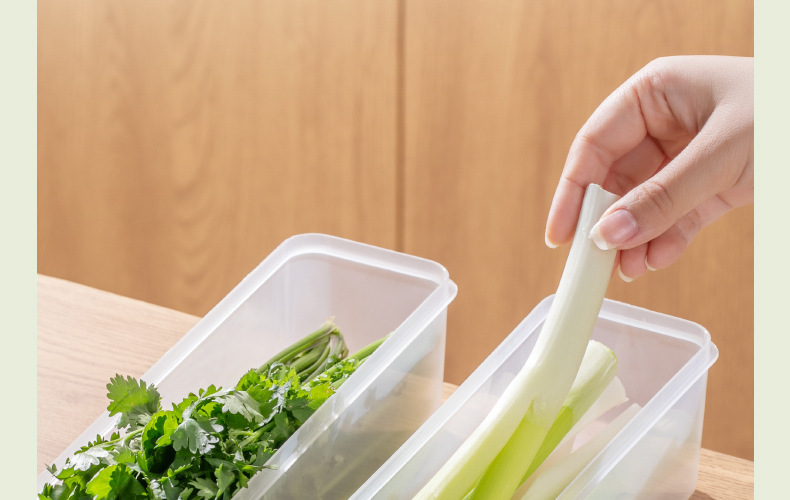 긴 스트립 냉장고 신선한 보관 상자 고수풀 전체 뿌리 파 파 냉장 냉동 국수 계란 투명 플라스틱 밀봉 상자스토어 가기