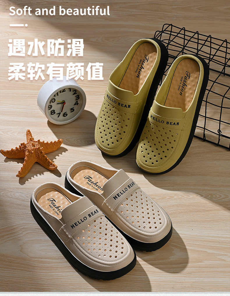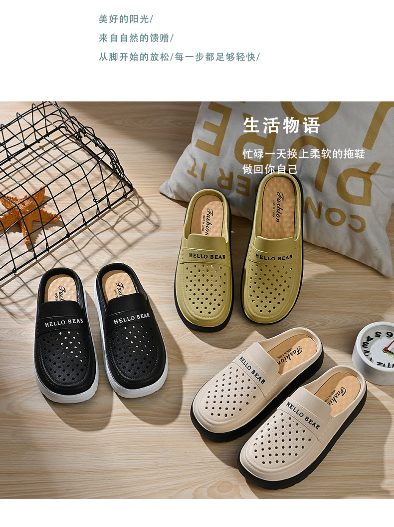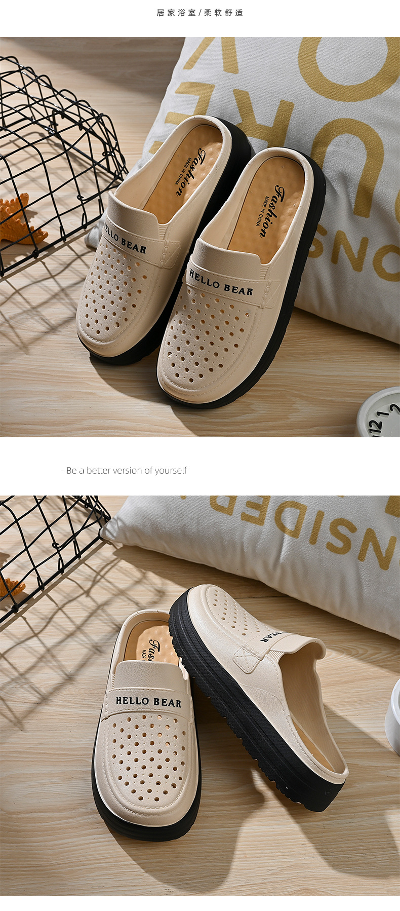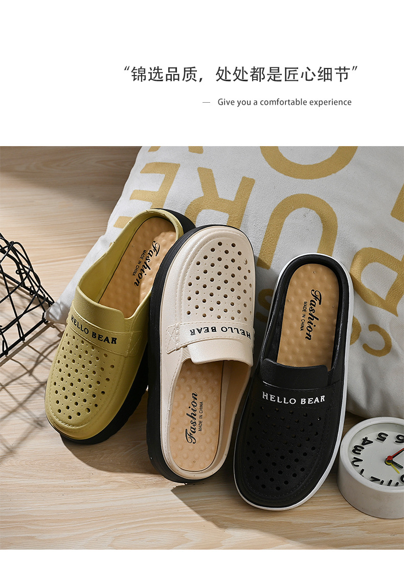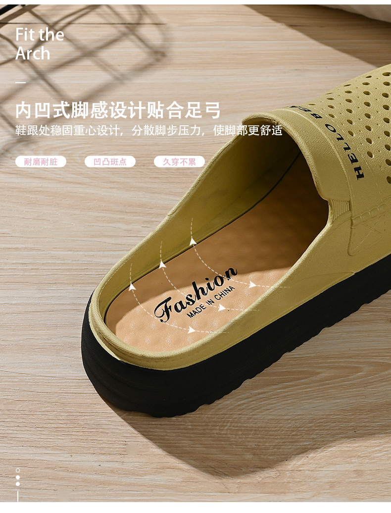 슬리퍼, 앞코가 막힌 슬리퍼, 일상 외출용, 미끄럼 방지, 중간 굽, 구멍이 있는 신발, 가정용 여성용 슬리퍼, 빈틈 있는 디자인, 플랫 바닥, 편안함스토어 가기