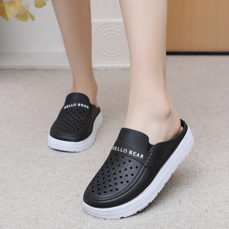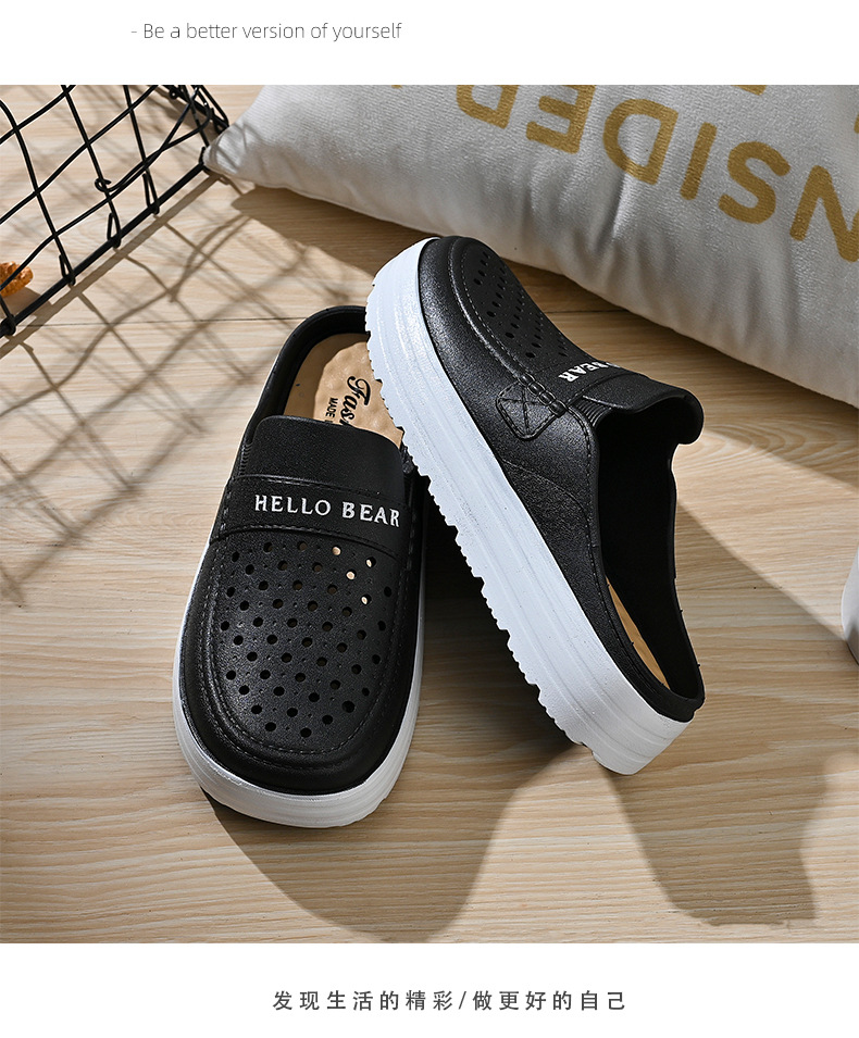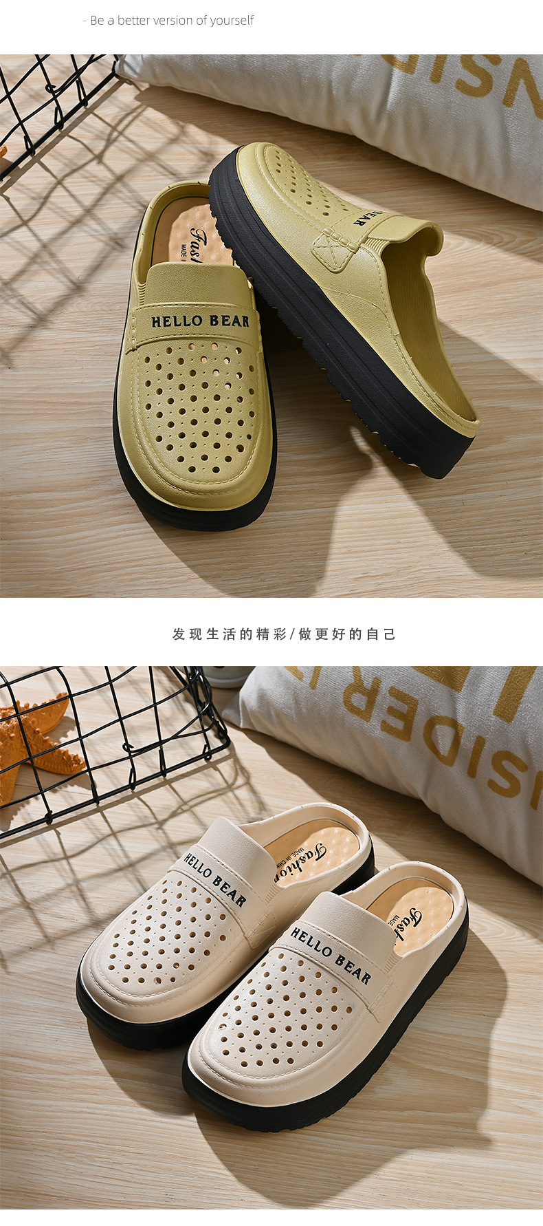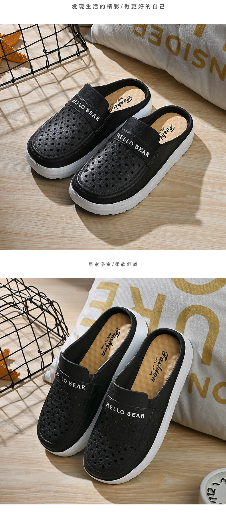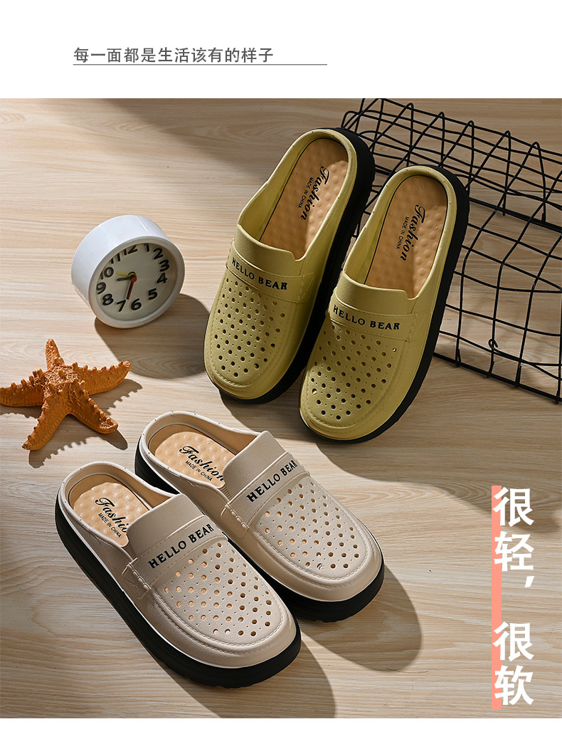슬리퍼, 앞코가 막힌 슬리퍼, 일상 외출용, 미끄럼 방지, 중간 굽, 구멍이 있는 신발, 가정용 여성용 슬리퍼, 빈틈 있는 디자인, 플랫 바닥, 편안함스토어 가기