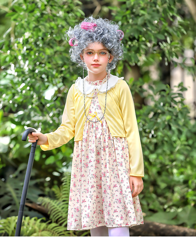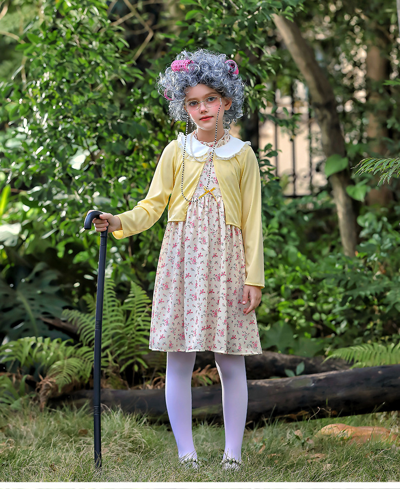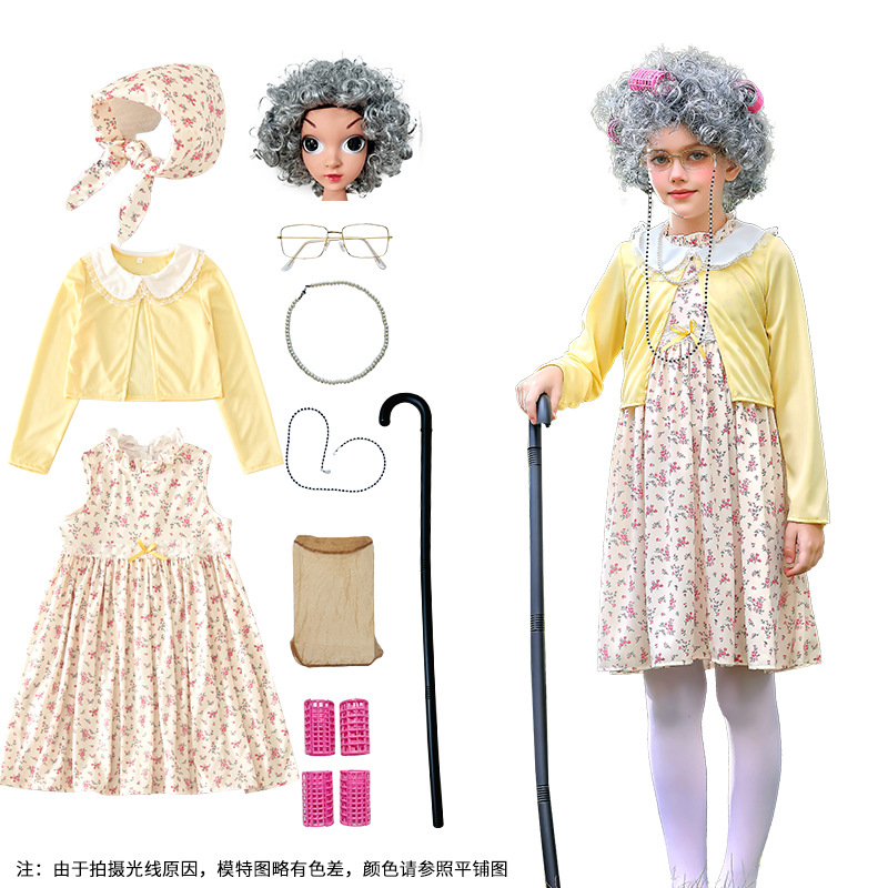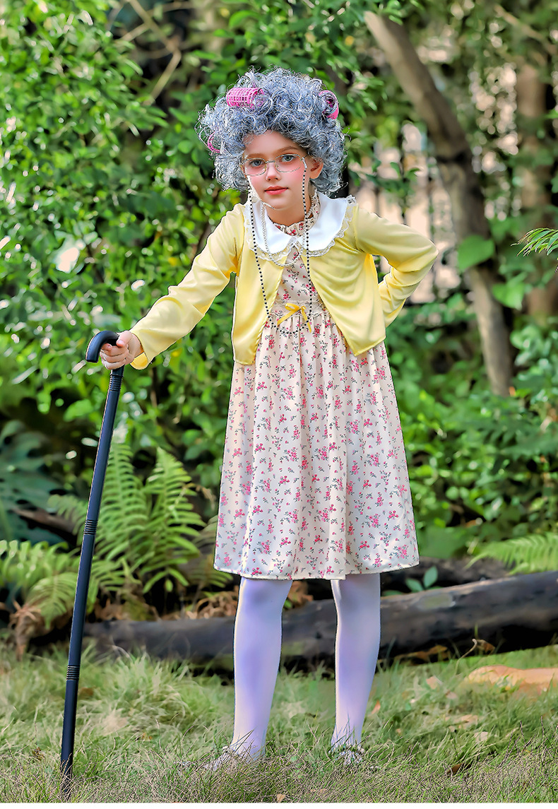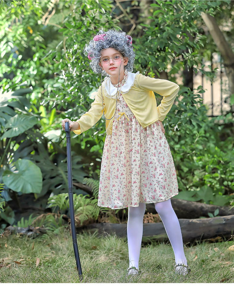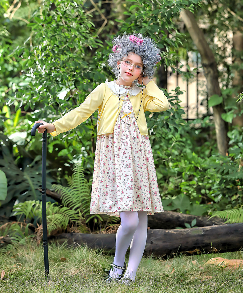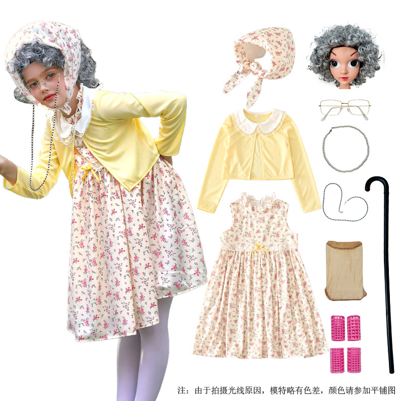 카니발 어린이 의상 100 일 학교 할머니 세트 꽃 원피스 재미 원피스 코스 올드 할머니 의상