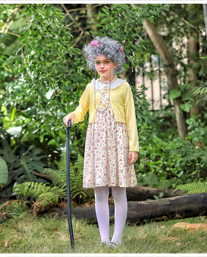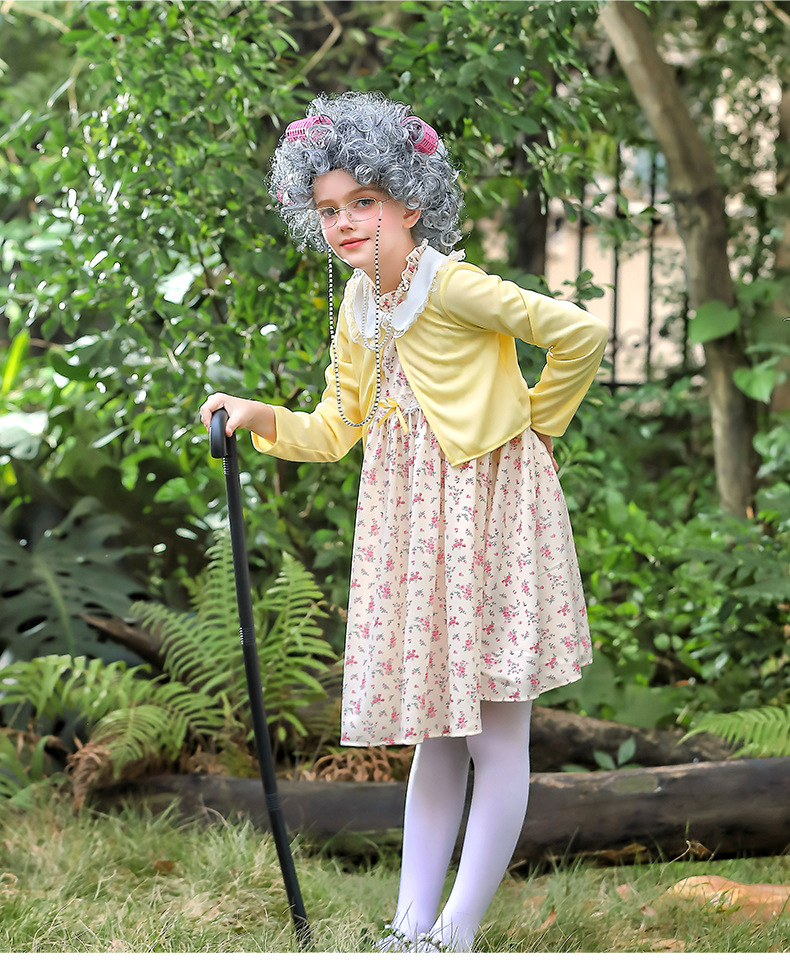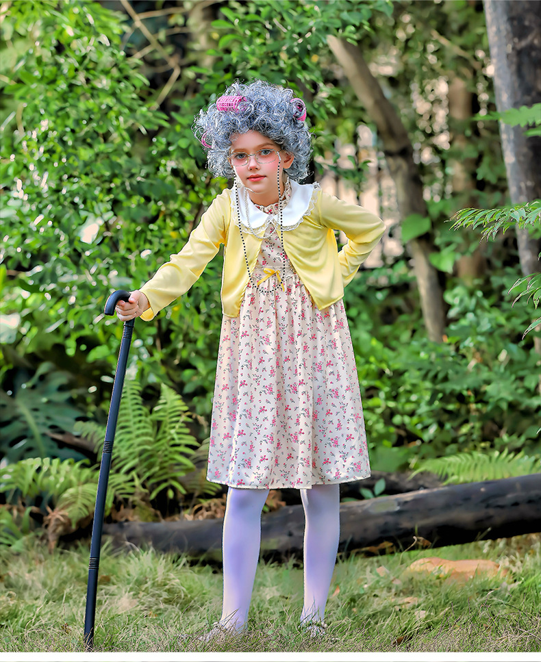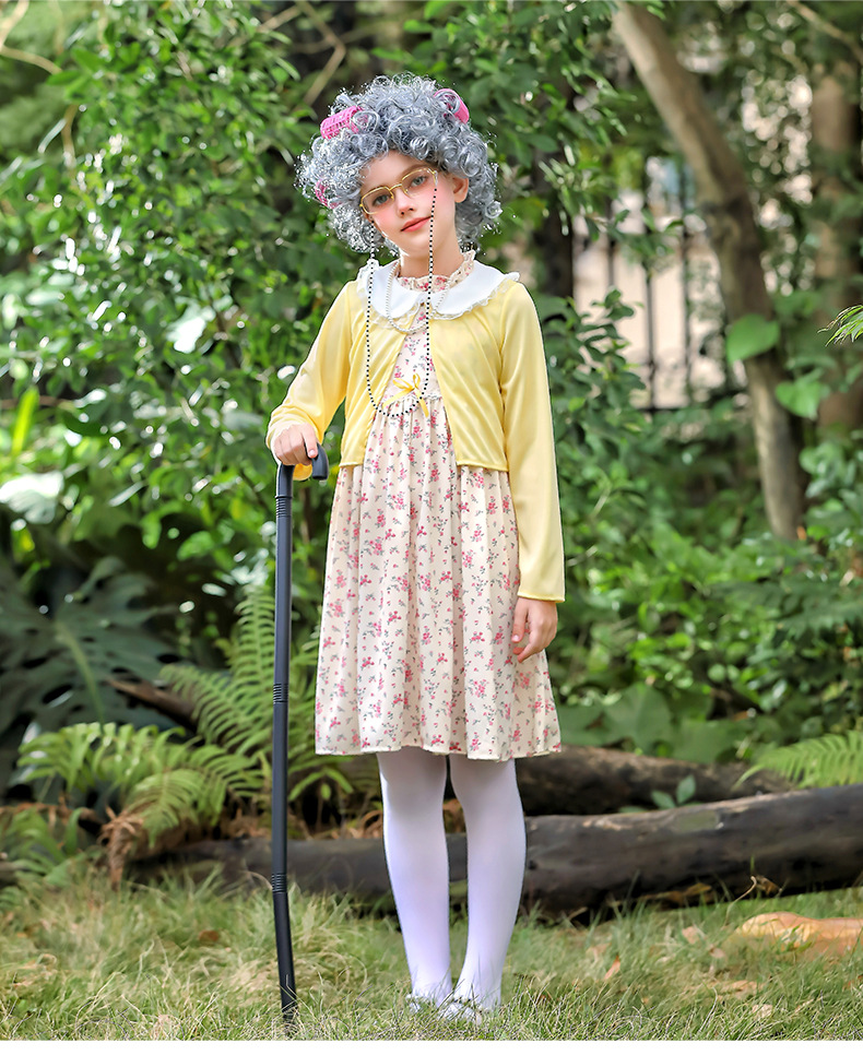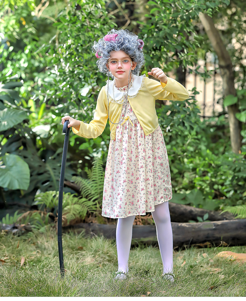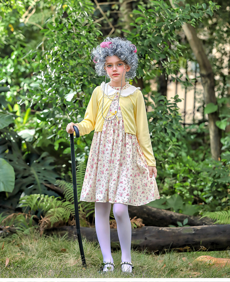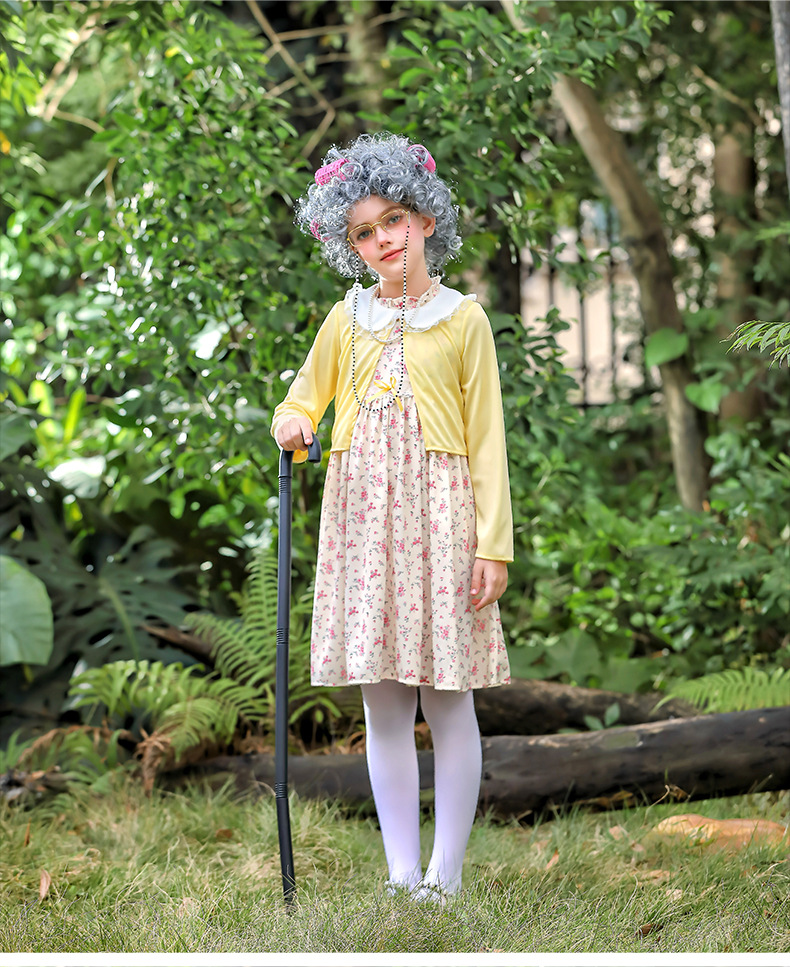 카니발 어린이 의상 100 일 학교 할머니 세트 꽃 원피스 재미 원피스 코스 올드 할머니 의상