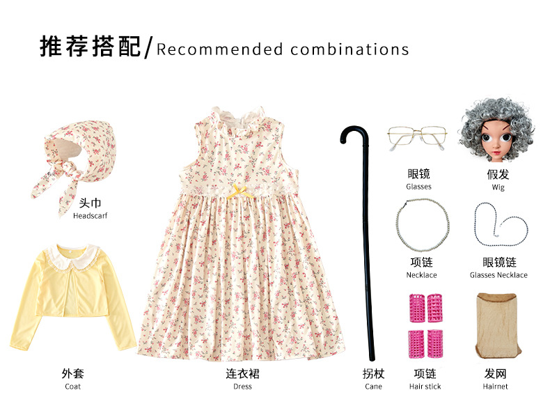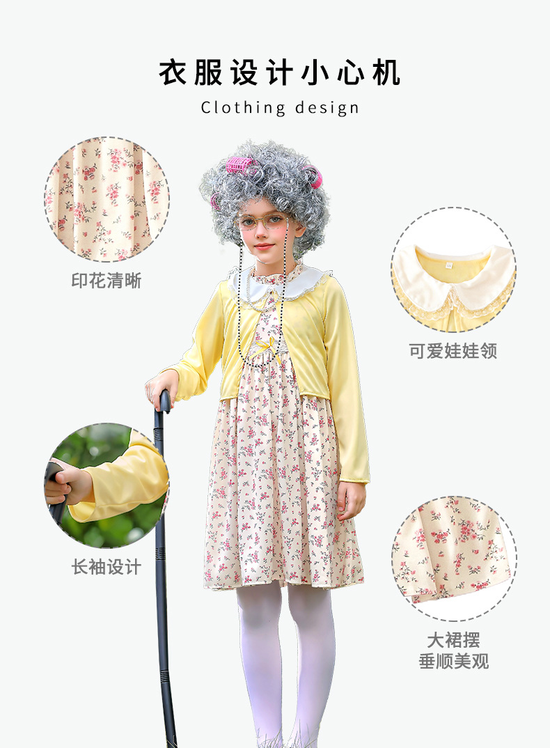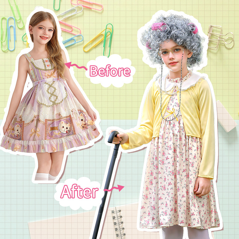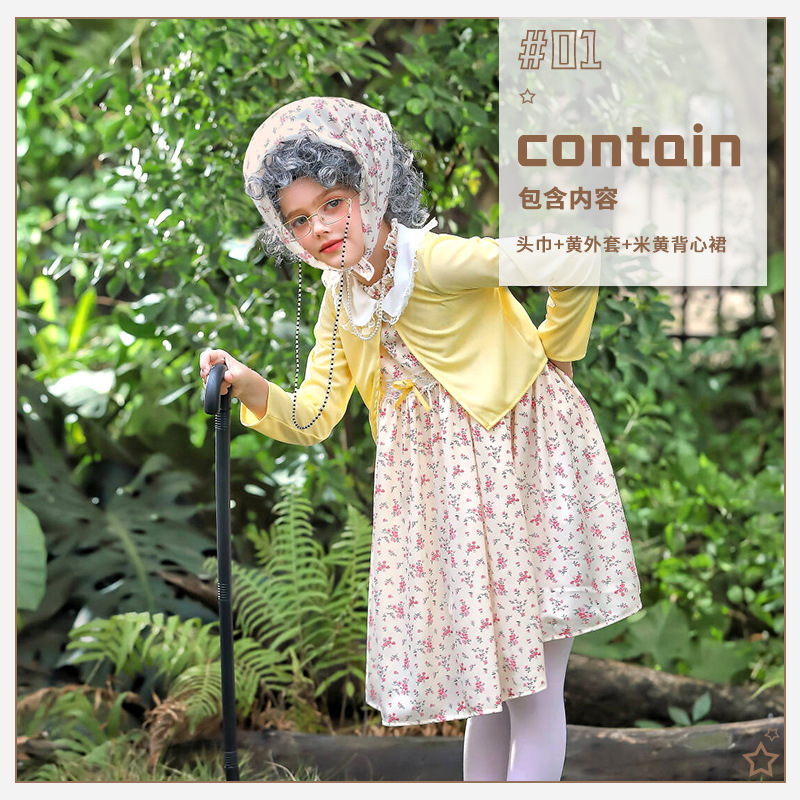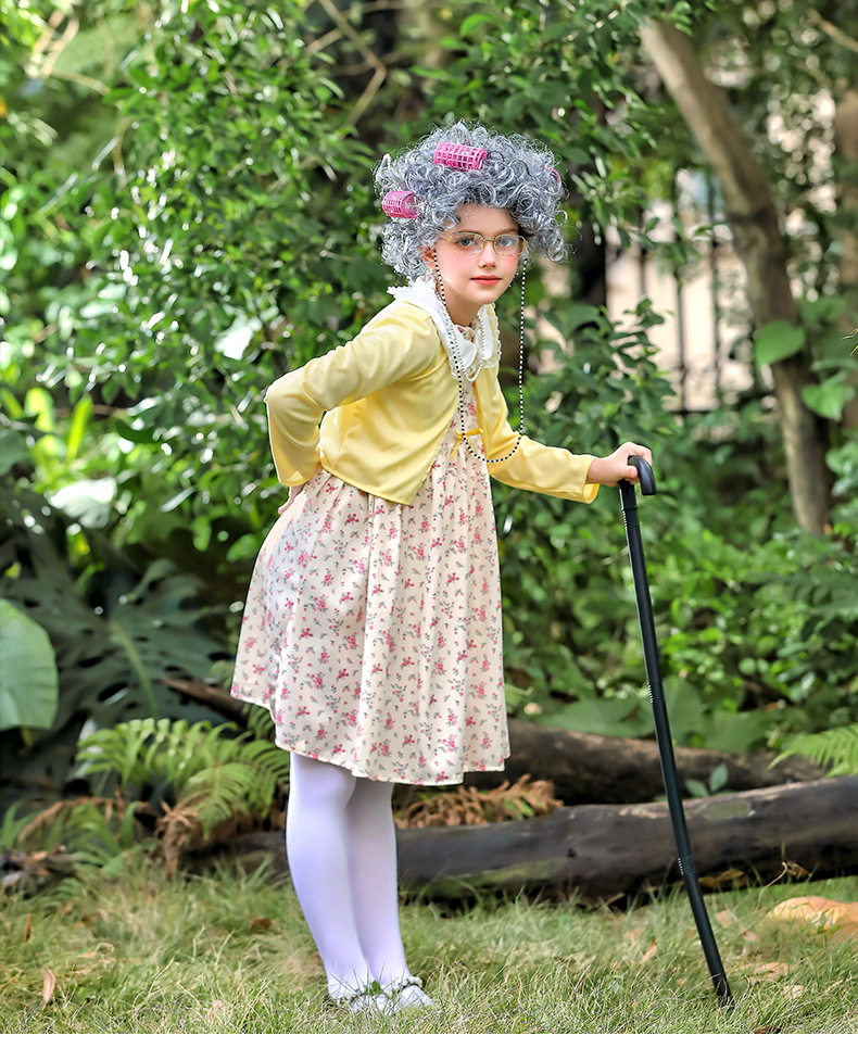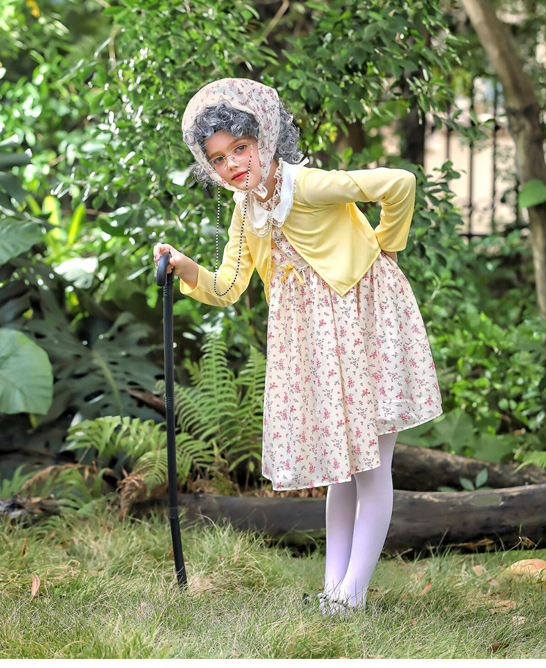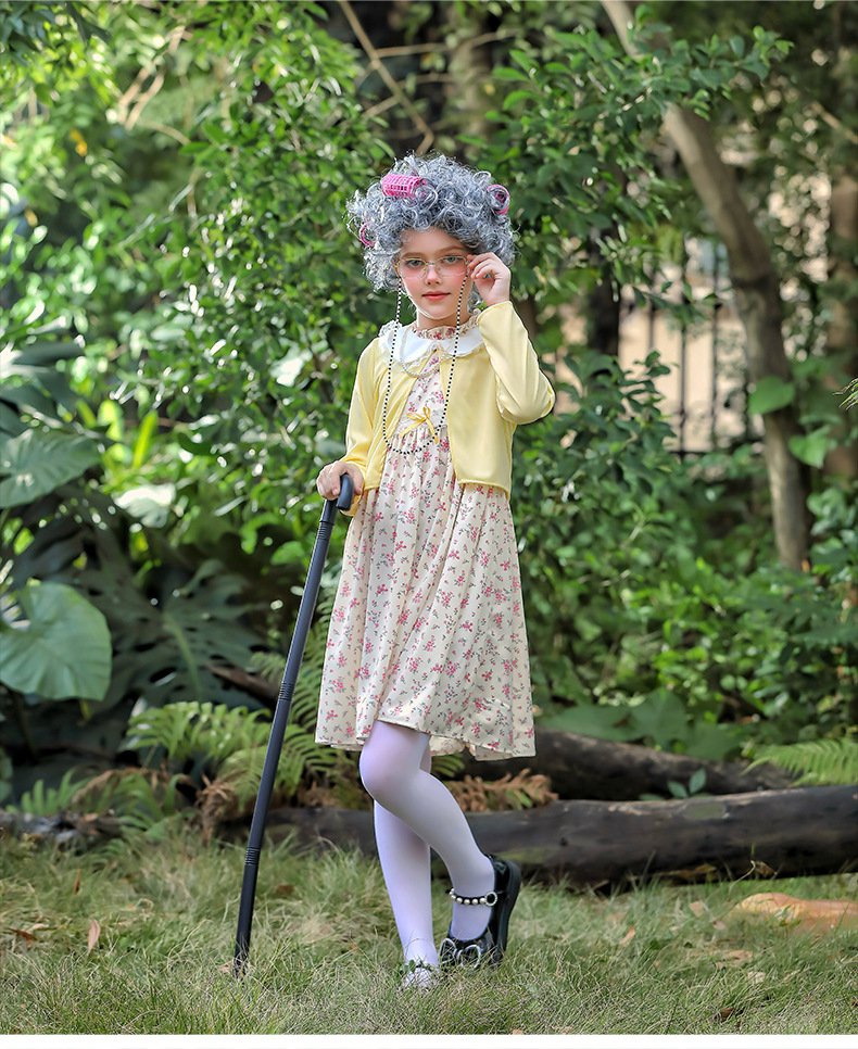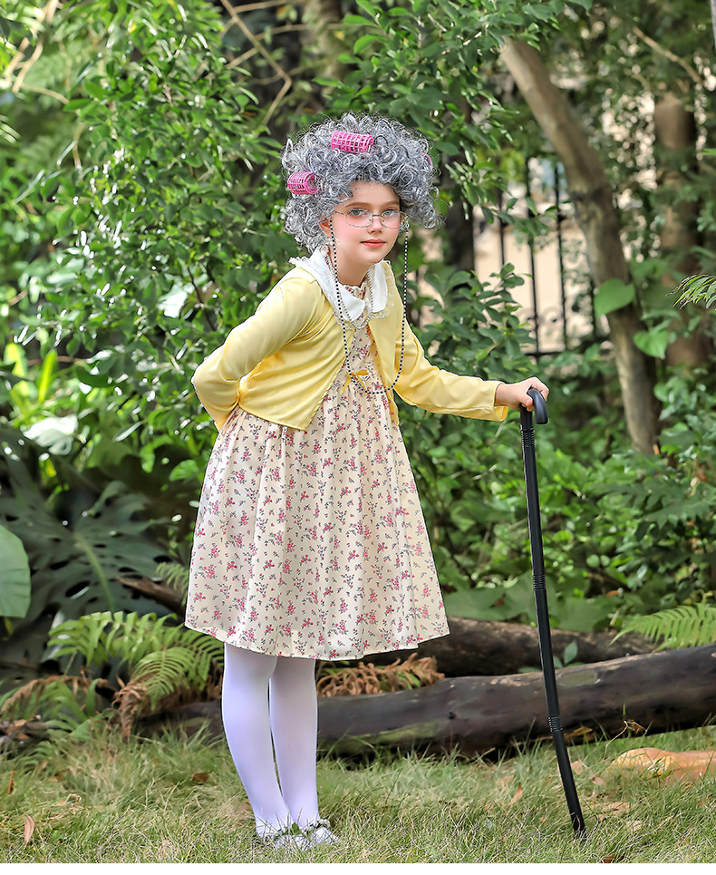 카니발 어린이 의상 100 일 학교 할머니 세트 꽃 원피스 재미 원피스 코스 올드 할머니 의상