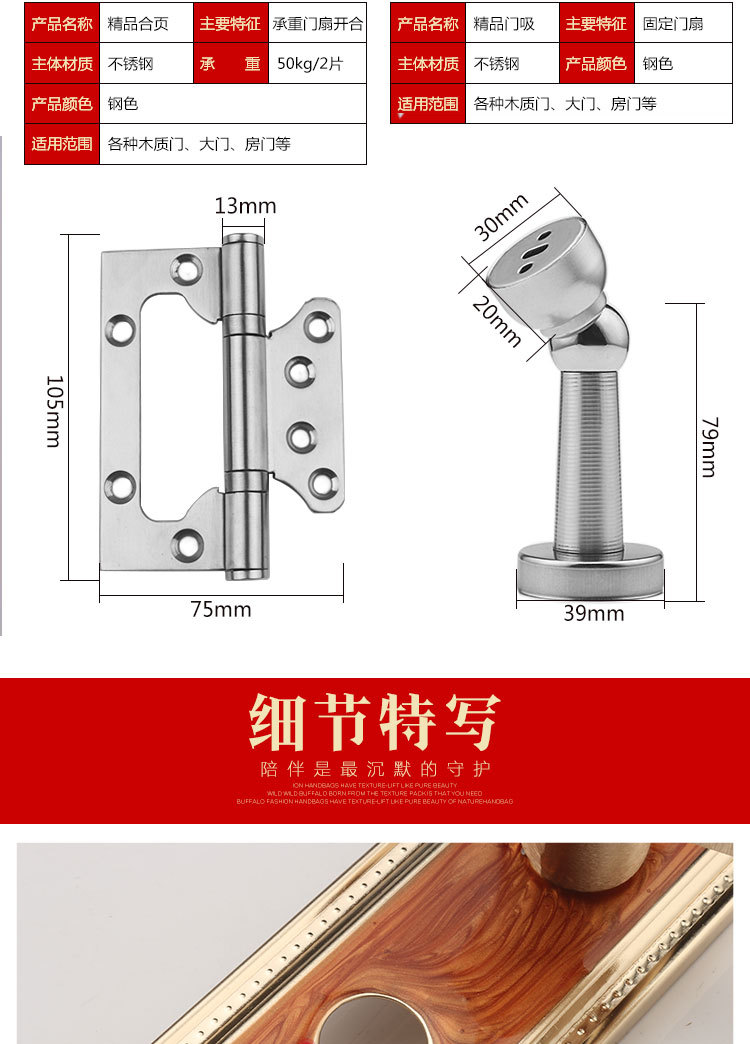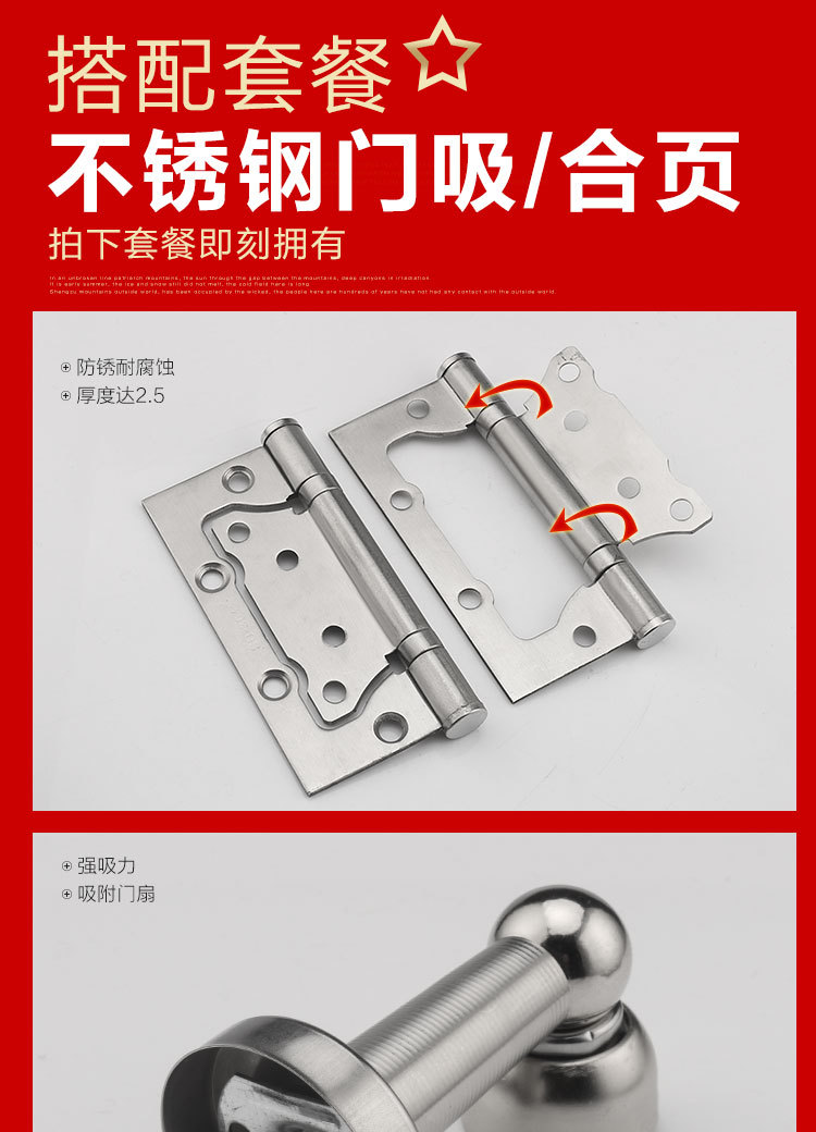 • 35-45MM-유니버설 유형-키 포함-A형 앰버 레드 + 힌지 3개 + 도어 캐치 1개