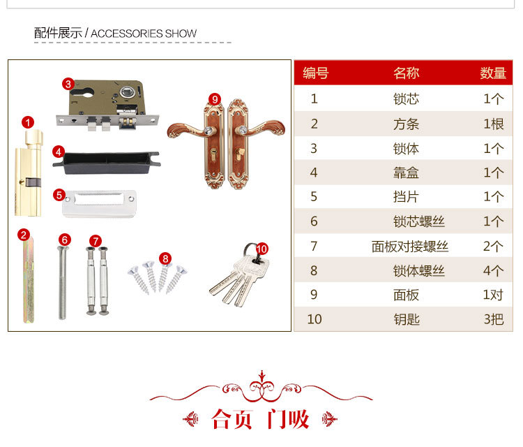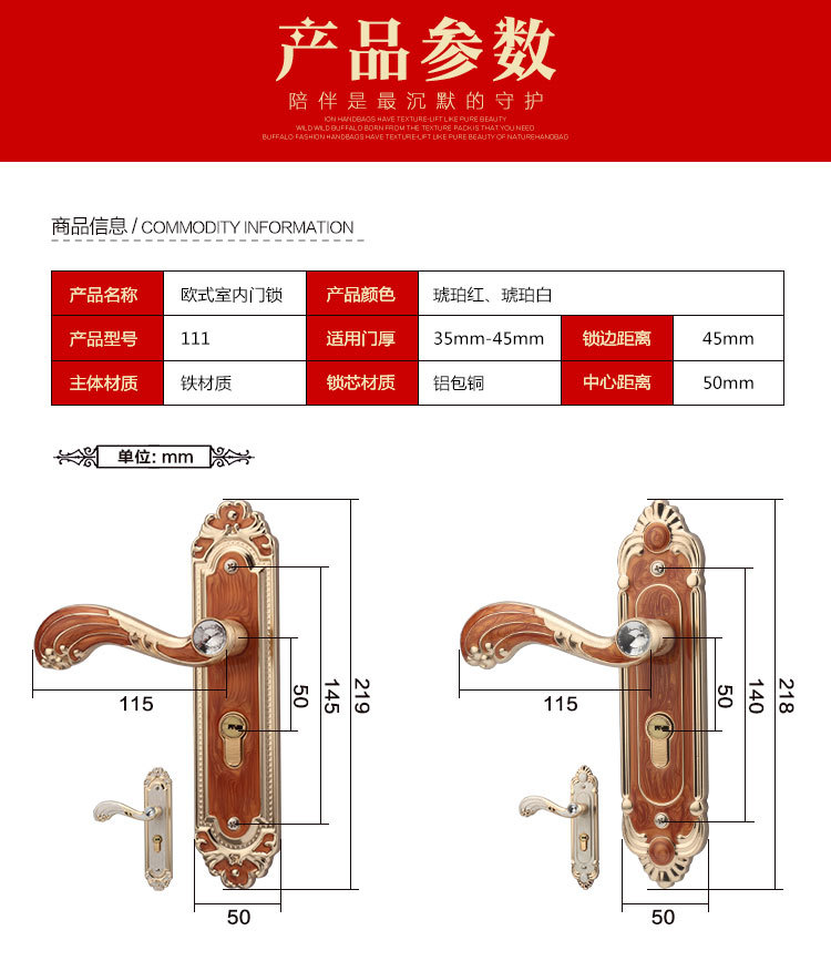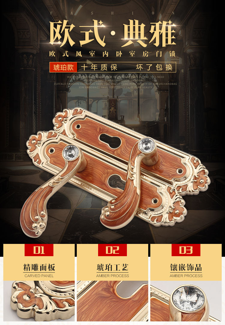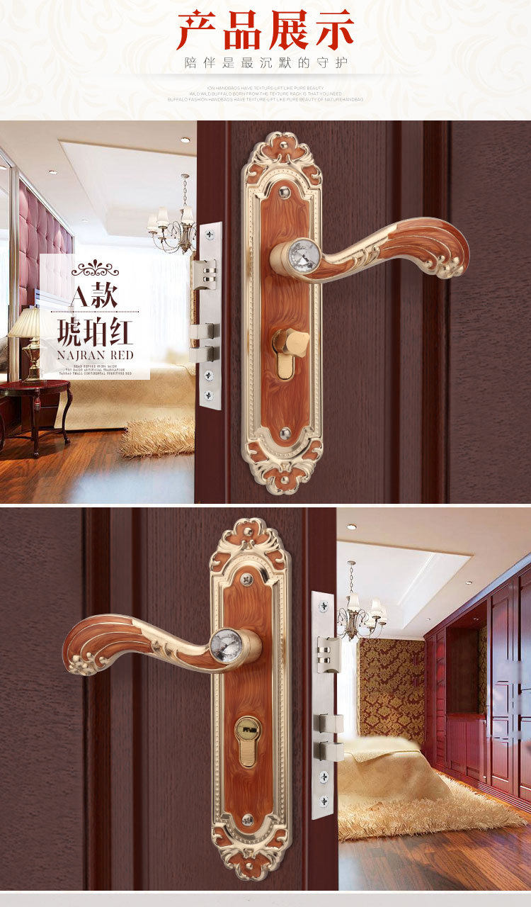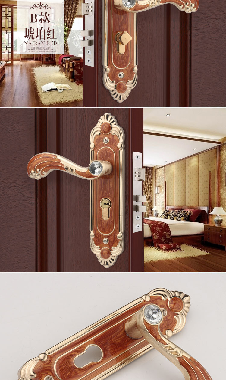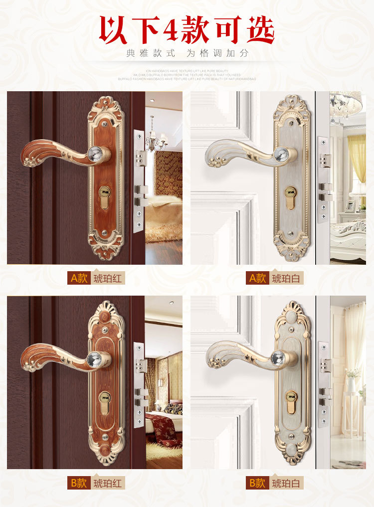 유럽 스타일 도어 잠금 실내 침실 단단한 나무 도어 잠금 핸들 홈 핸들 잠금 장치 도어 룸 도어 잠금 장치