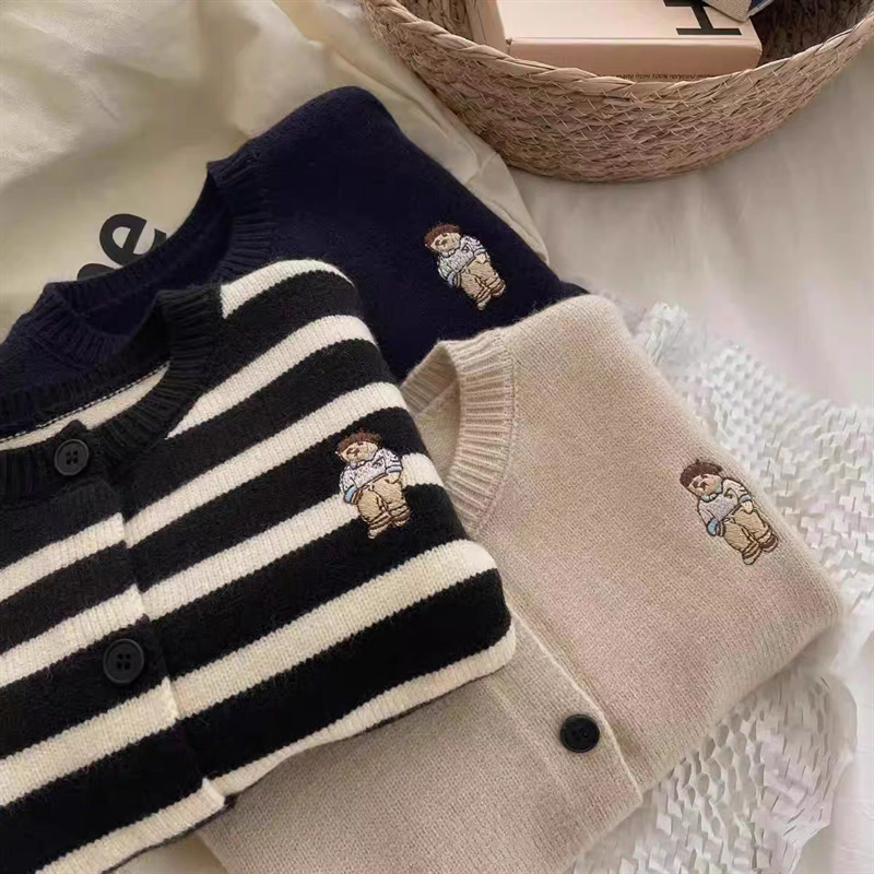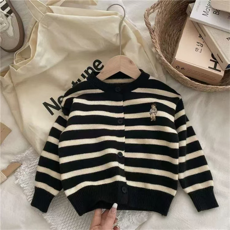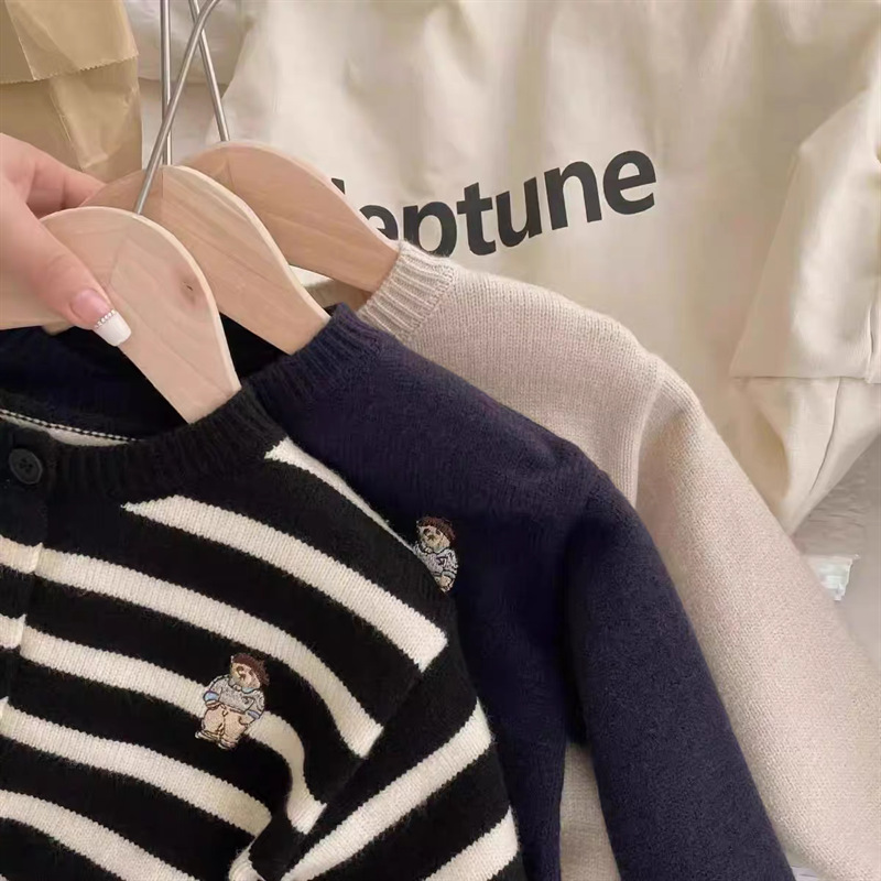2025 스트라이프 어린이 니트 탑 카디건 새 소년과 소녀 봄, 가을 수 놓은 스웨터 베이비 코트스토어 가기