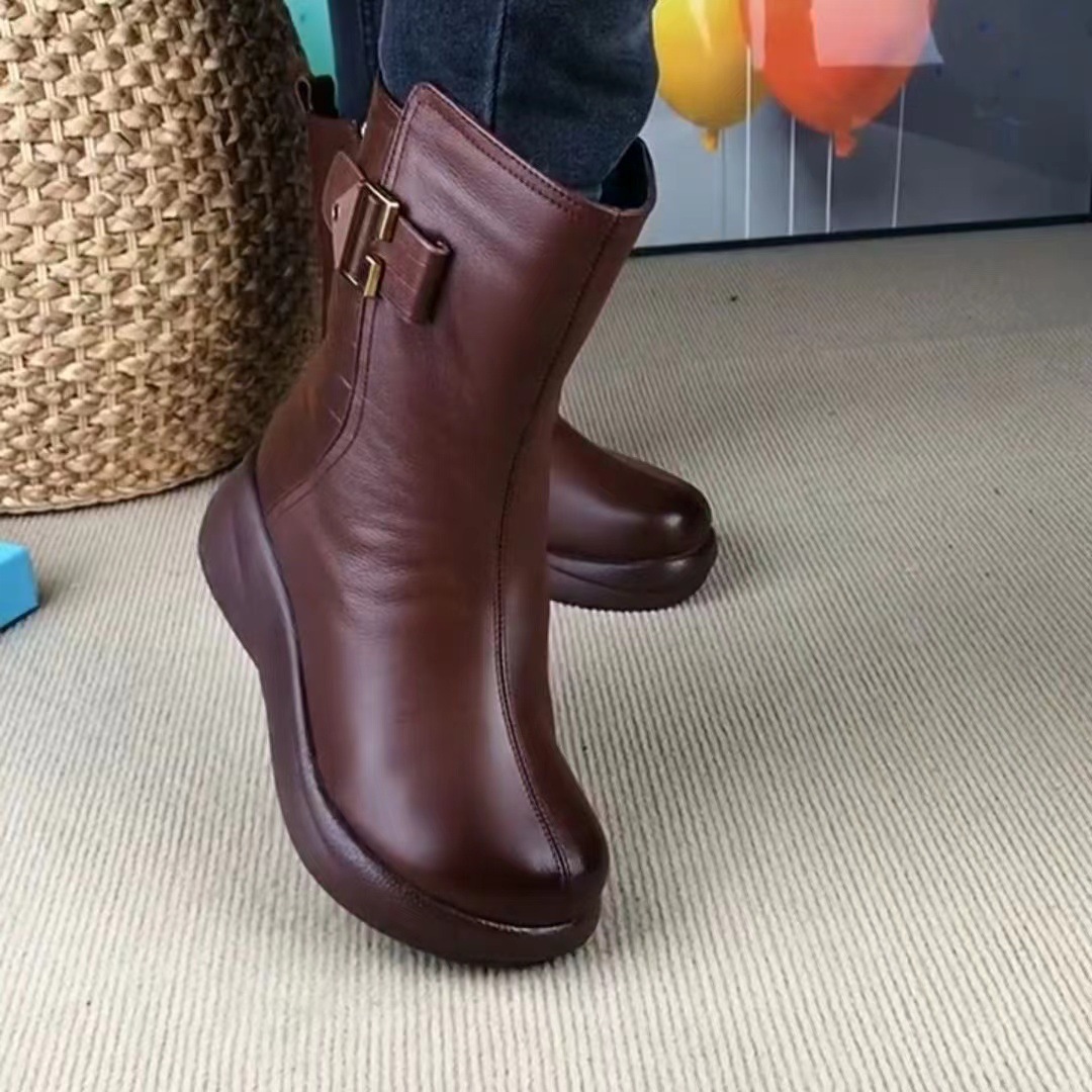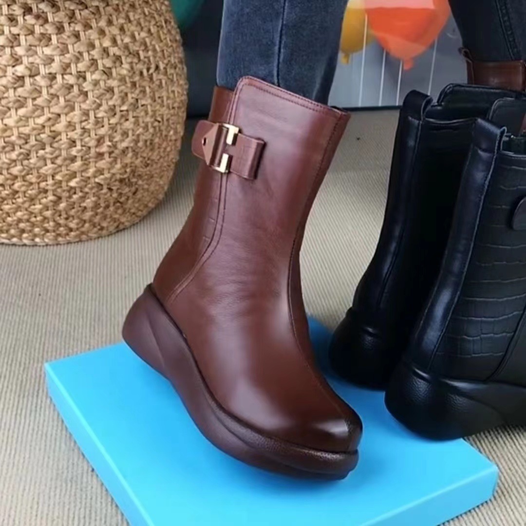 국경 간 폭발 두꺼운 밑창 기모 마틴 부츠 2024 가을과 겨울 새로운 부드러운 밑창 어머니면 신발 조커 패션 부츠스토어 가기