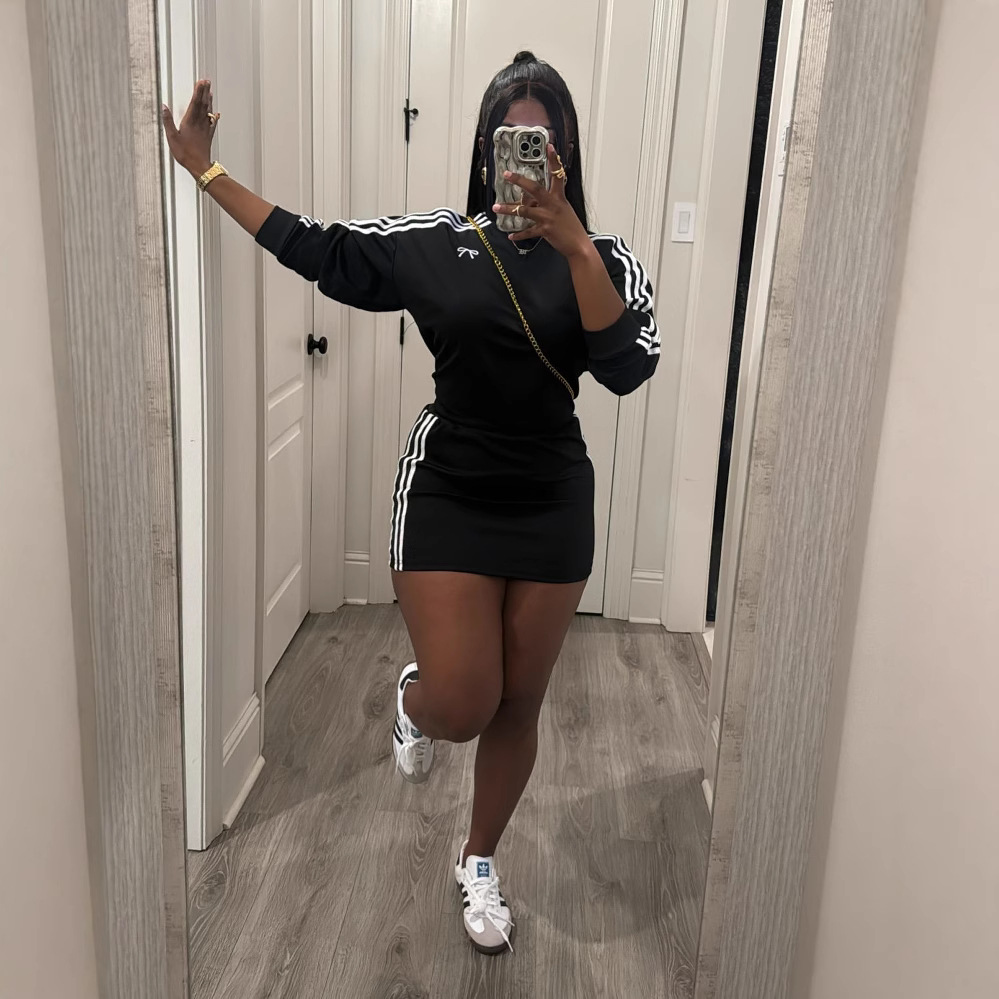 FF1392 블랙 스웨트 스커트 세트 여성용 스커트 캐주얼 투피스 세트스토어 가기
