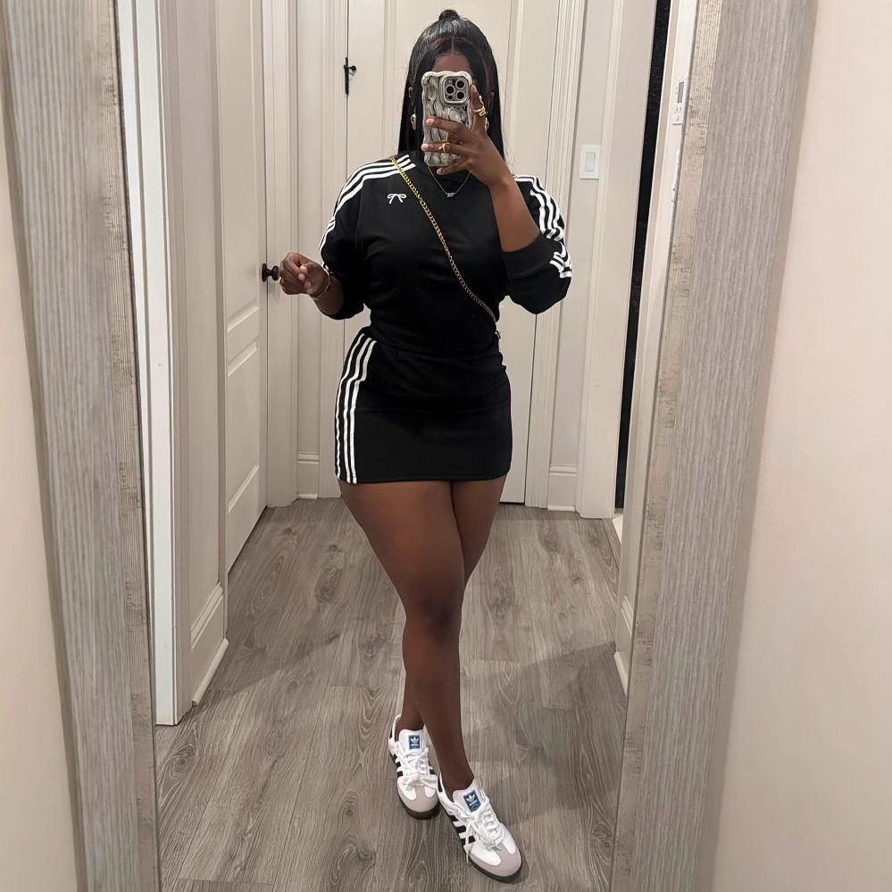 FF1392 블랙 스웨트 스커트 세트 여성용 스커트 캐주얼 투피스 세트