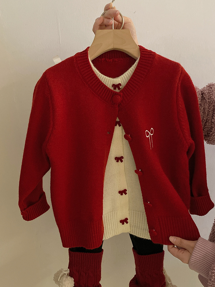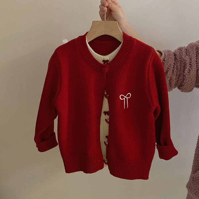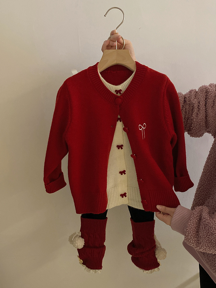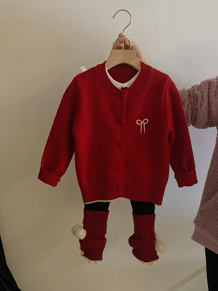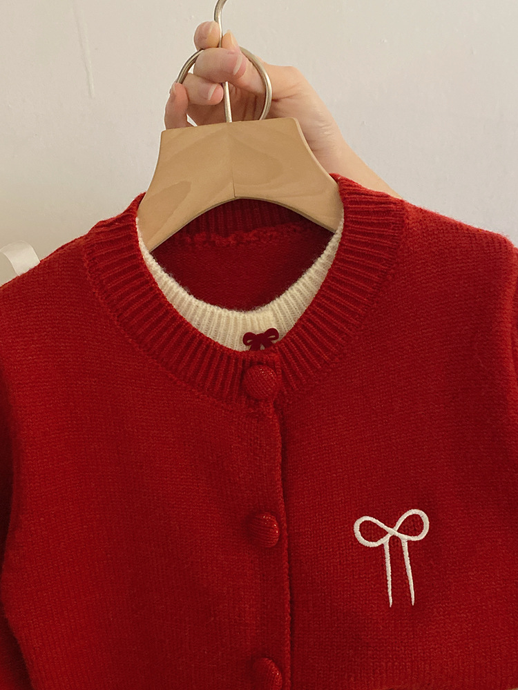 여자 한국 가을/겨울 세트 2024 여자 가짜 투피스 보우 스웨터 카디건 기모 스티칭 레깅스 트렌디스토어 가기