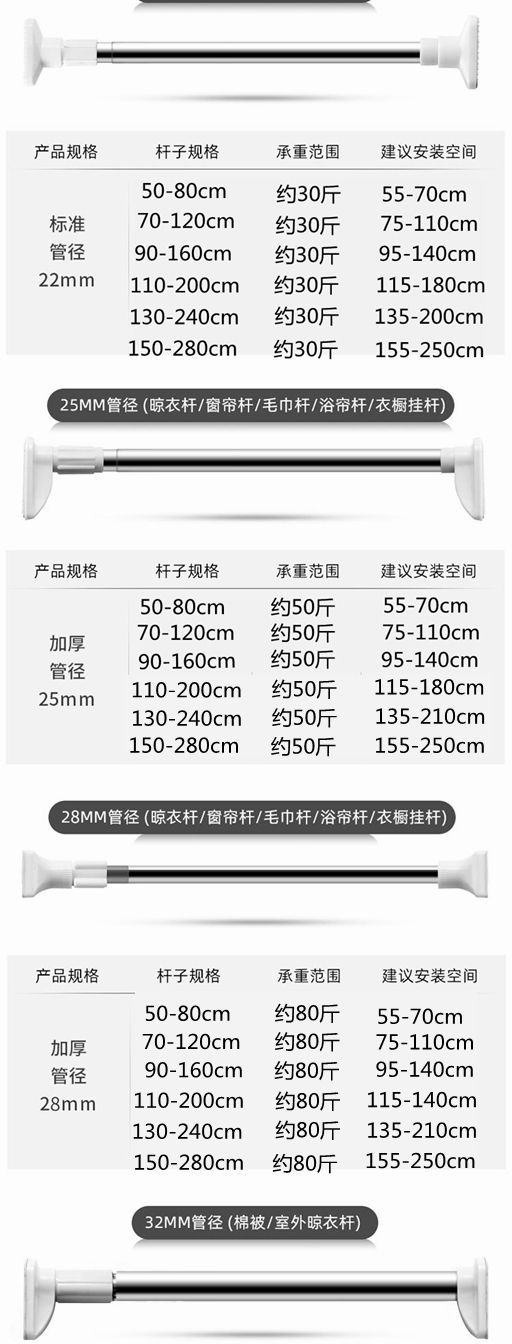 커튼로드 드릴링 의류 건조로드 텔레스코픽 로드 샤워 커튼 로드 도어 커튼 옷장 교수형 로드 지지대 기숙사 스테인레스 스틸스토어 가기