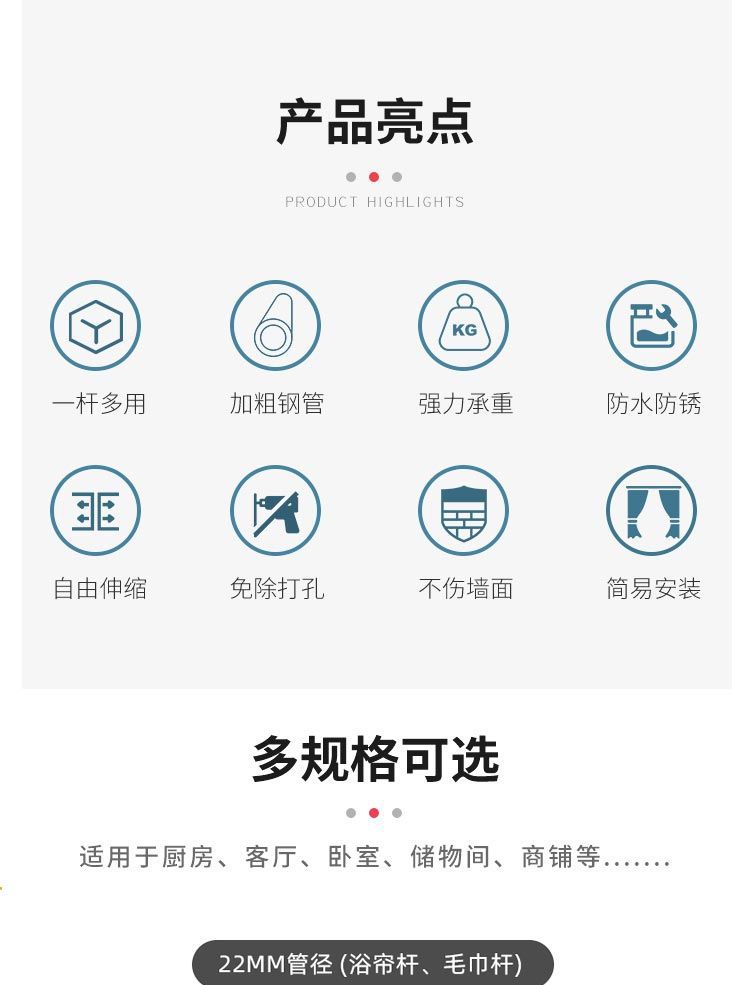 • 두꺼운 버전(직경 25) 샤워 커튼봉