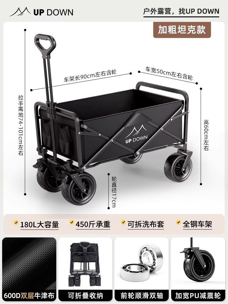 다운 캠퍼 트롤리 캠프 트레일러 야외 접이식 어린이 캠핑 트롤리 피크닉 트롤리 리콜