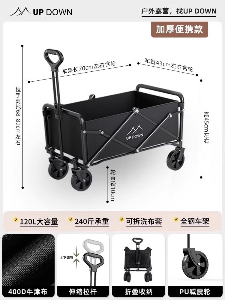 다운 캠퍼 트롤리 캠프 트레일러 야외 접이식 어린이 캠핑 트롤리 피크닉 트롤리 리콜스토어 가기