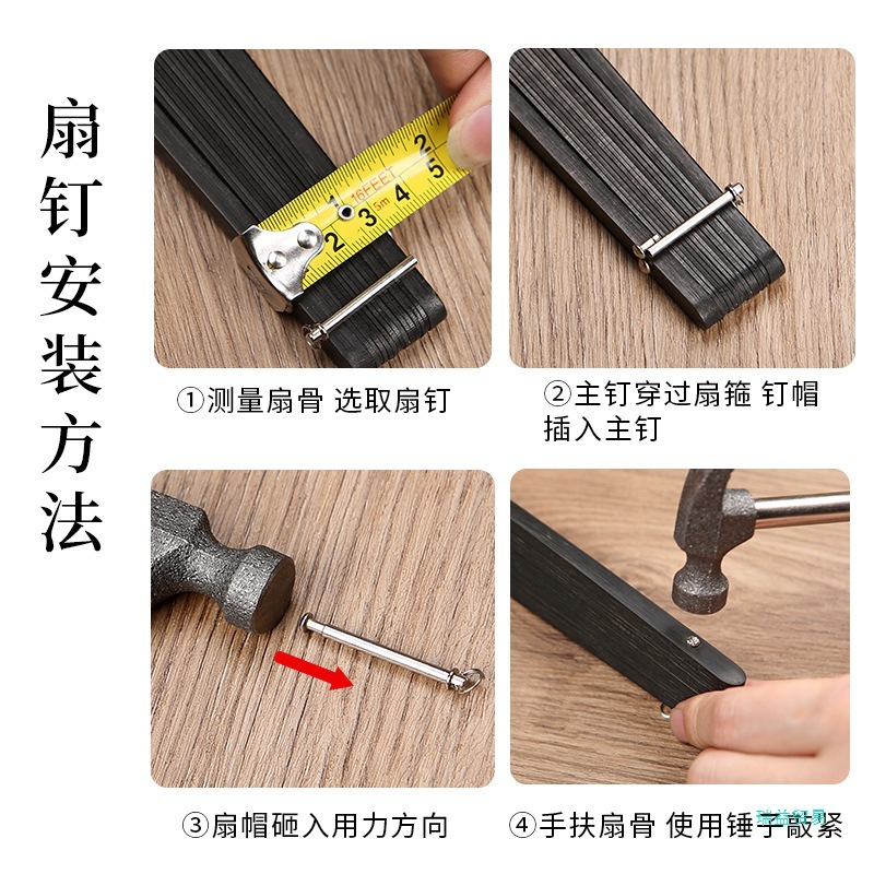 HNXM299 접이식 팬 네일 링 금속 도금 리벳 팬 전문 유지 보수 팬이있는 멀티 사이즈 팬 샤프트