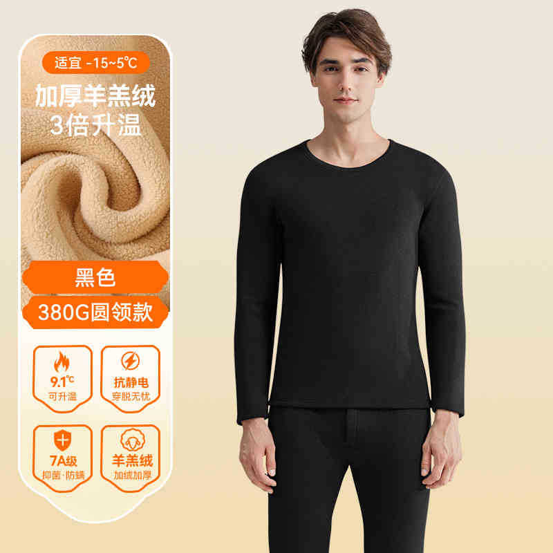 양고기 벨벳 열 속옷 남성용 두꺼운 기모 난방 냉방 언더 코트 가을 옷 가을 바지 남자 세트 따뜻한 옷스토어 가기