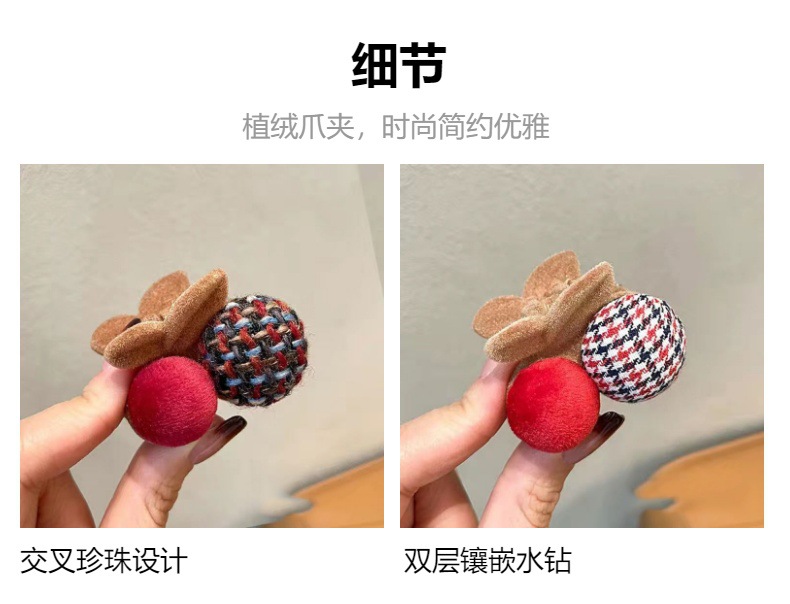 가을과 겨울 봉제 체리 헤어핀 여성의 귀여운 사이드 뱅 그랩 클립 헤어핀 스몰 사이즈 클립 헤드웨어 2024 새로운
