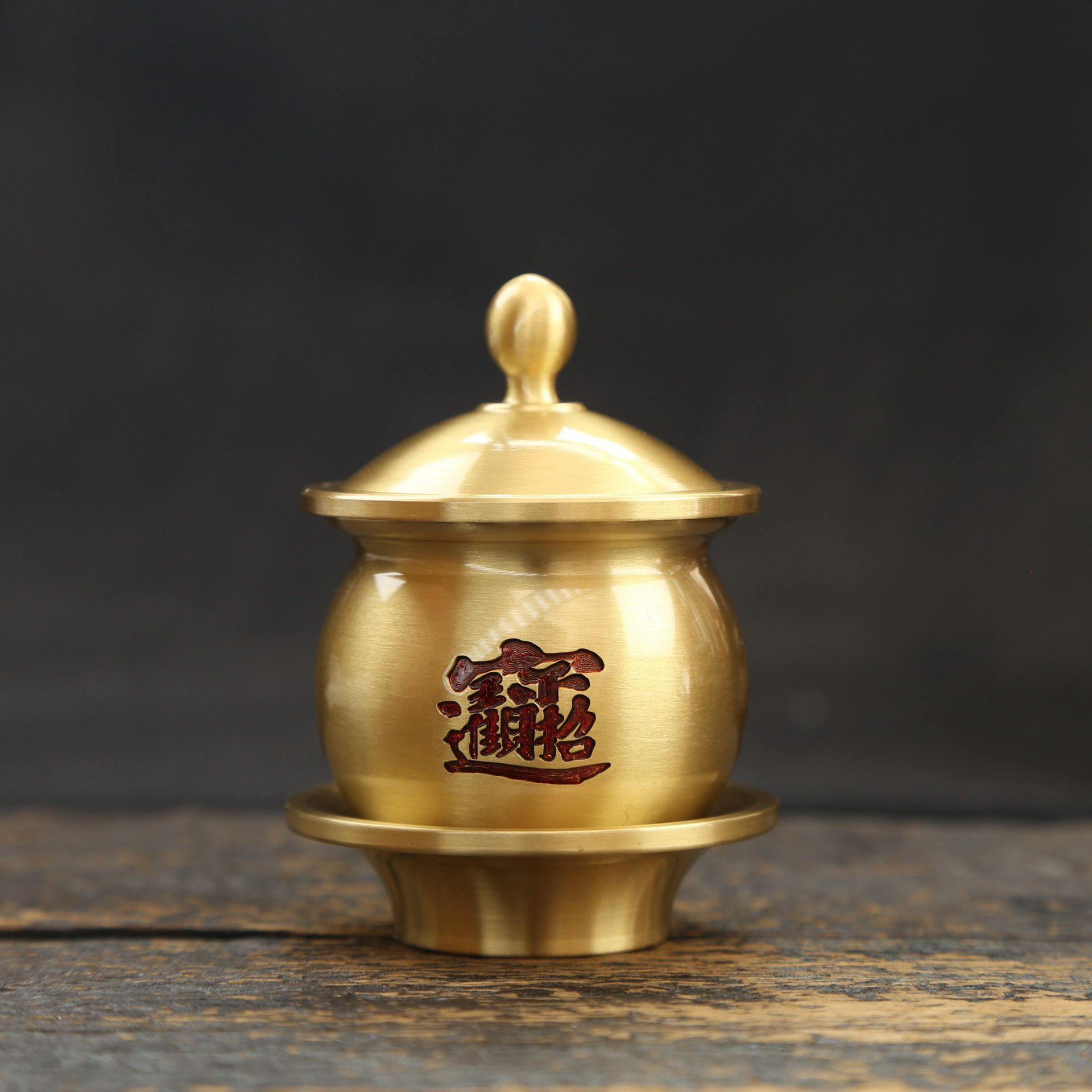 황동 물 공급 컵 라이트 바디 컵 성수 컵 물 공급 컵 순수한 물 컵 부처님 전면 신성한 집 사원 물 컵 구리 물 공급 컵스토어 가기