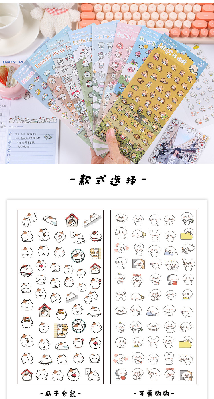 새로운 미니 작은 애완 동물 어린이 스티커 귀여운 만화 어린이 스티커 애완 동물 방수 소재 가방 DIY 손 계정 스티커