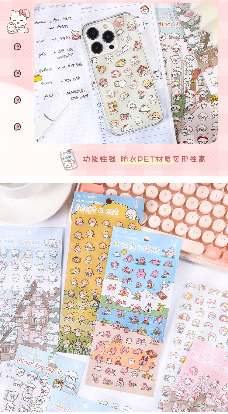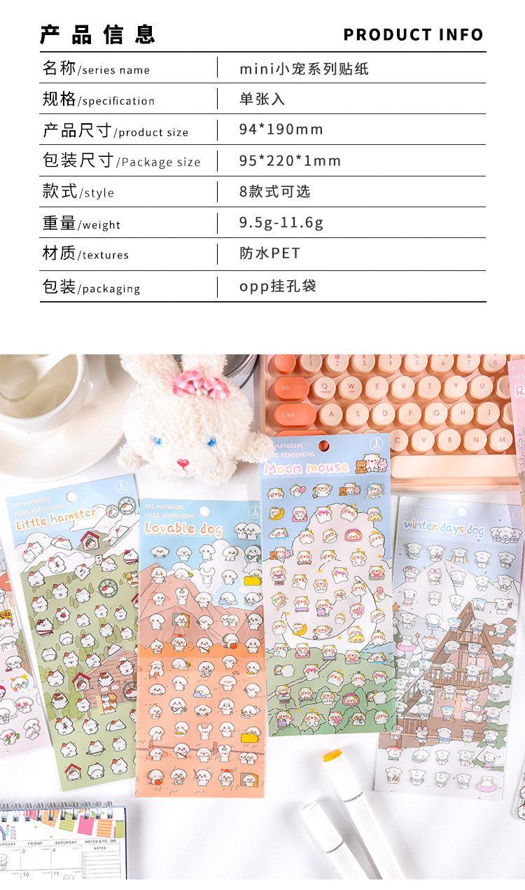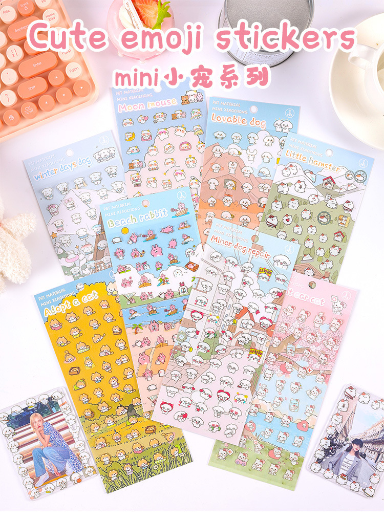 새로운 미니 작은 애완 동물 어린이 스티커 귀여운 만화 어린이 스티커 애완 동물 방수 소재 가방 DIY 손 계정 스티커스토어 가기