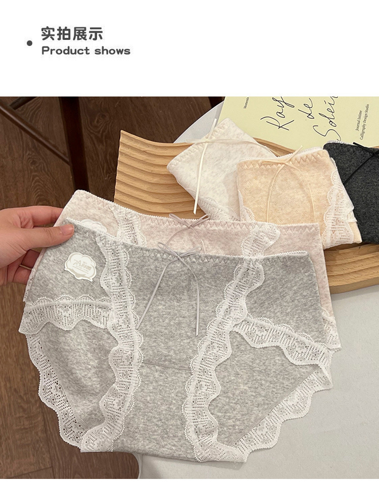 레이스 코튼 속옷 여성의 중간 허리 순수한 바람 편안한 면 7A 항균 크로트 클래스 A 베이비 코튼 여성 속옷