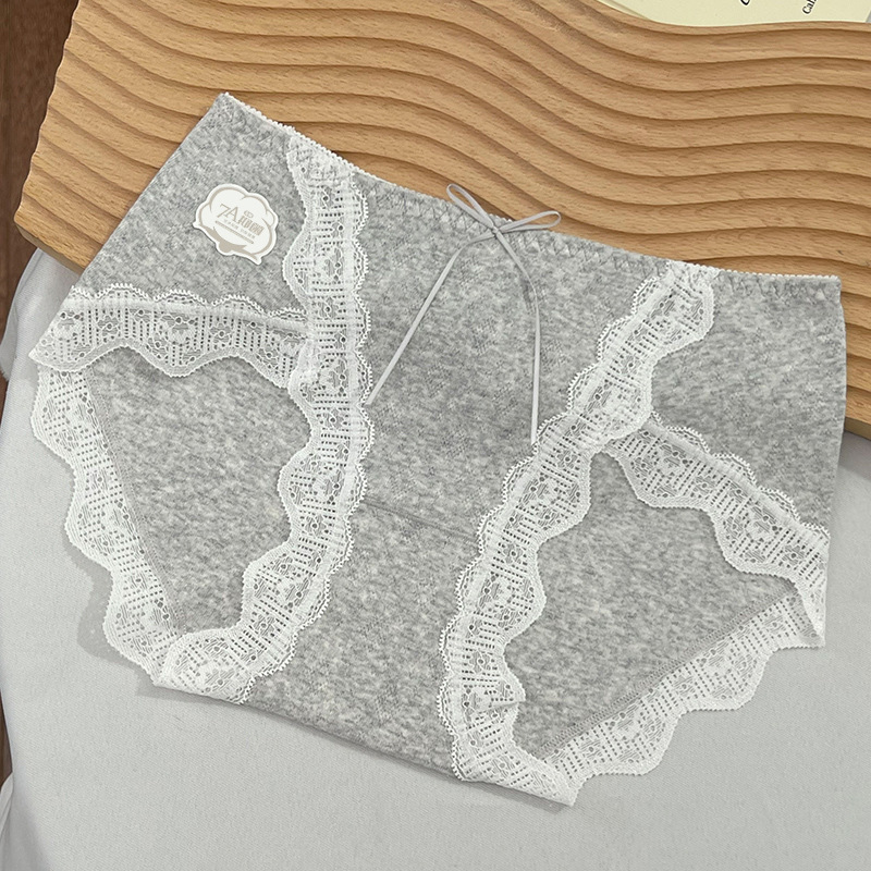 레이스 코튼 속옷 여성의 중간 허리 순수한 바람 편안한 면 7A 항균 크로트 클래스 A 베이비 코튼 여성 속옷스토어 가기