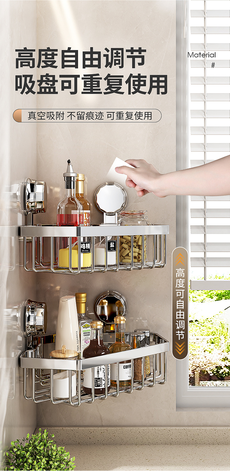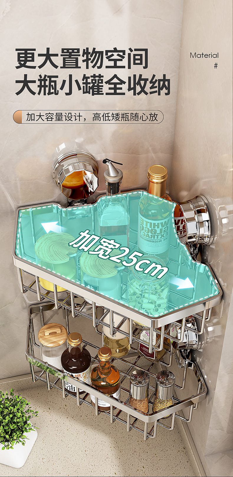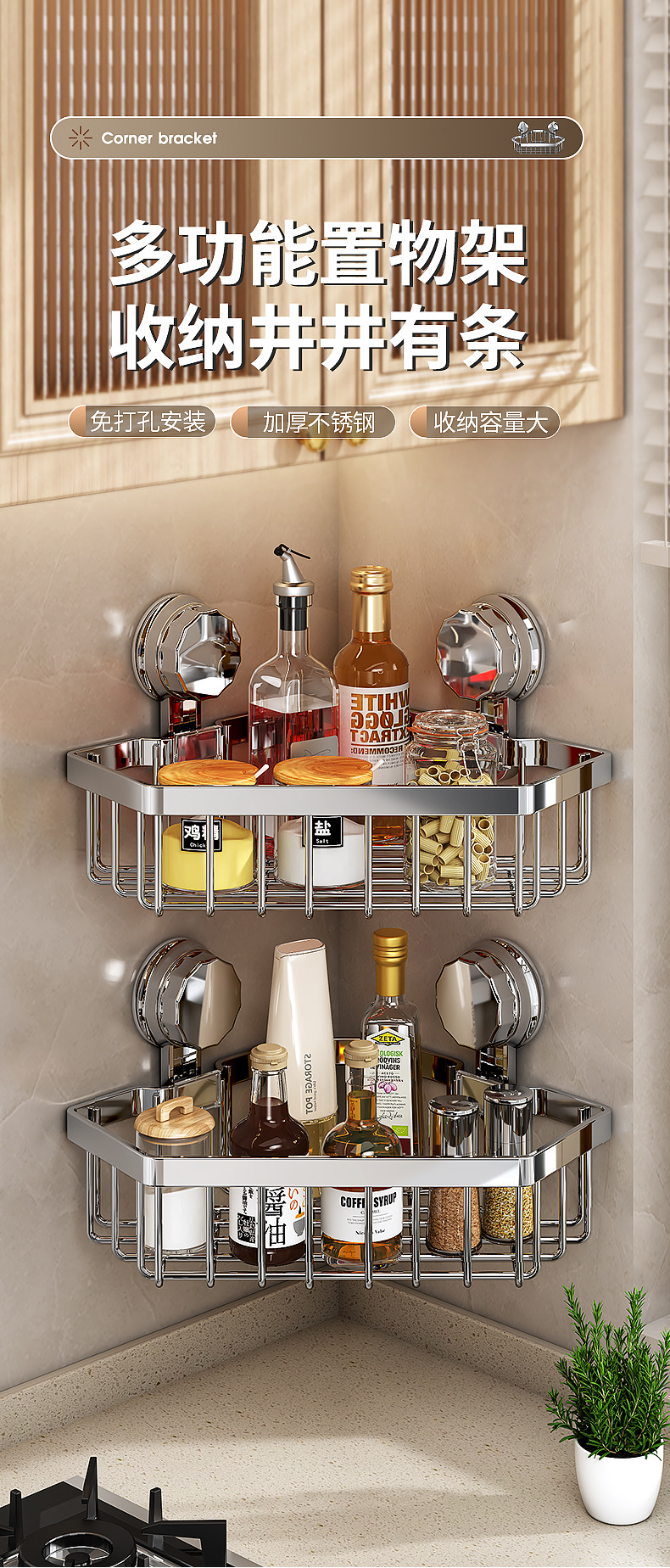 주방 펀치 프리 흡입 컵 스토리지 랙 벽걸이 형 조미료 가정용 코너 조미료 제품 스토리지 랙 도매스토어 가기