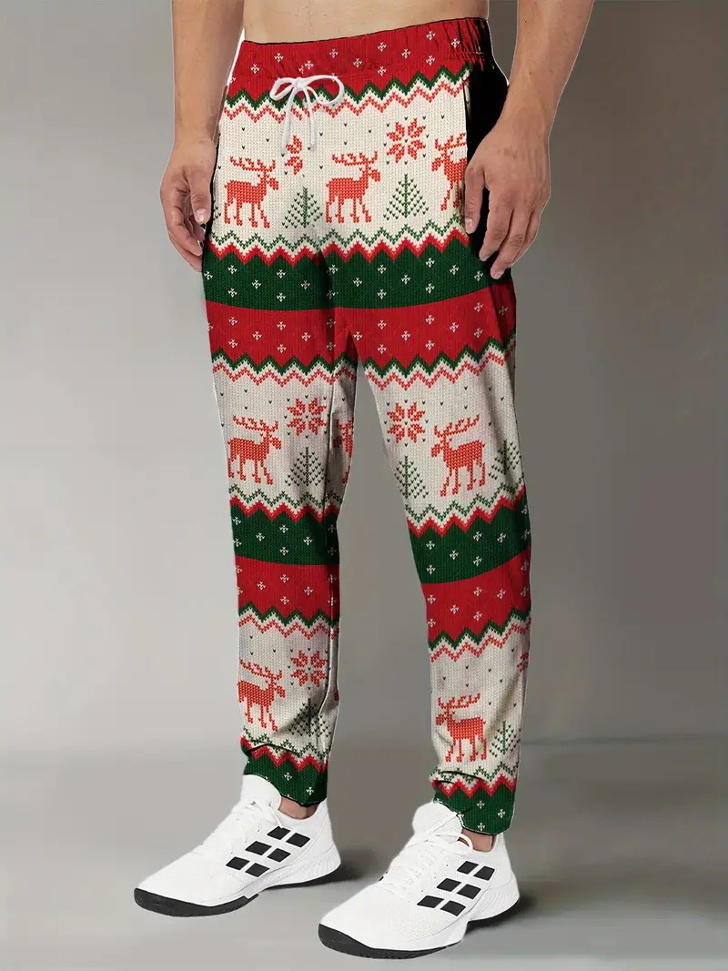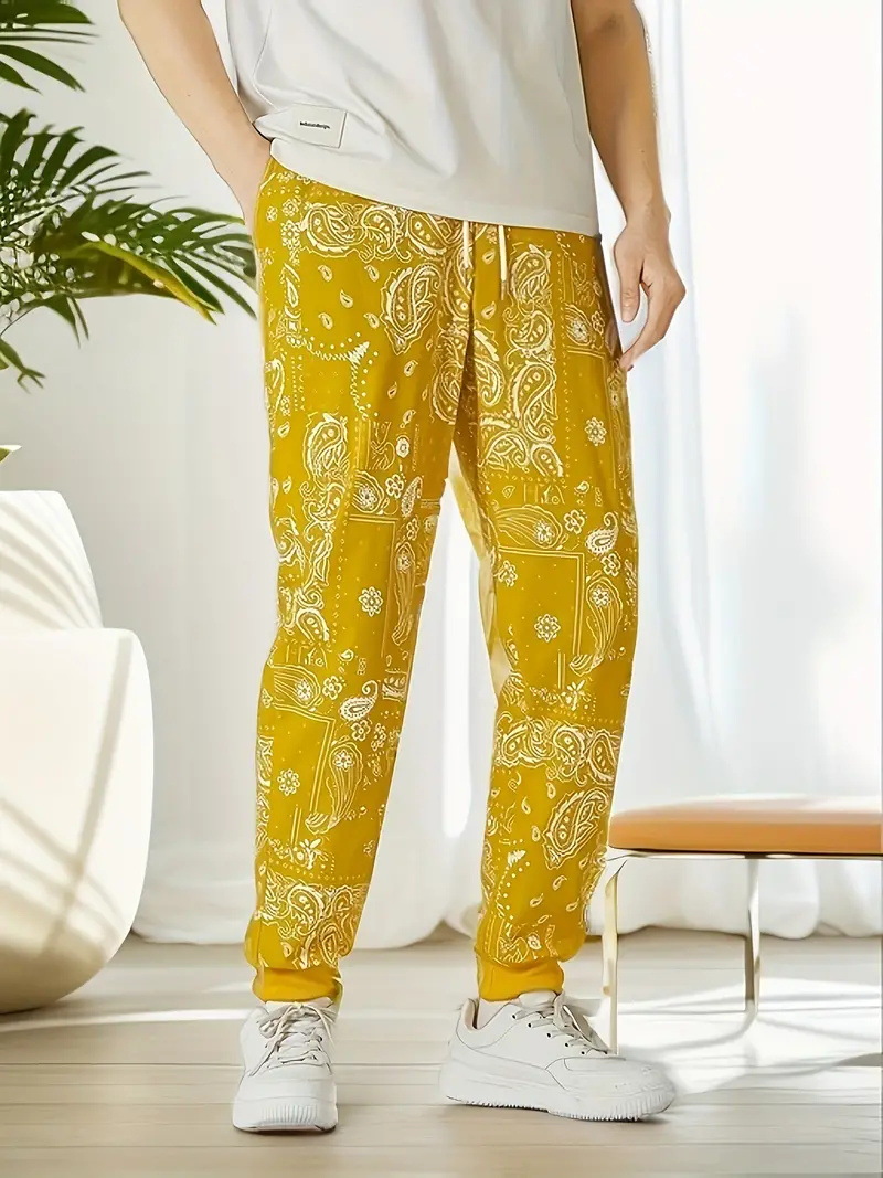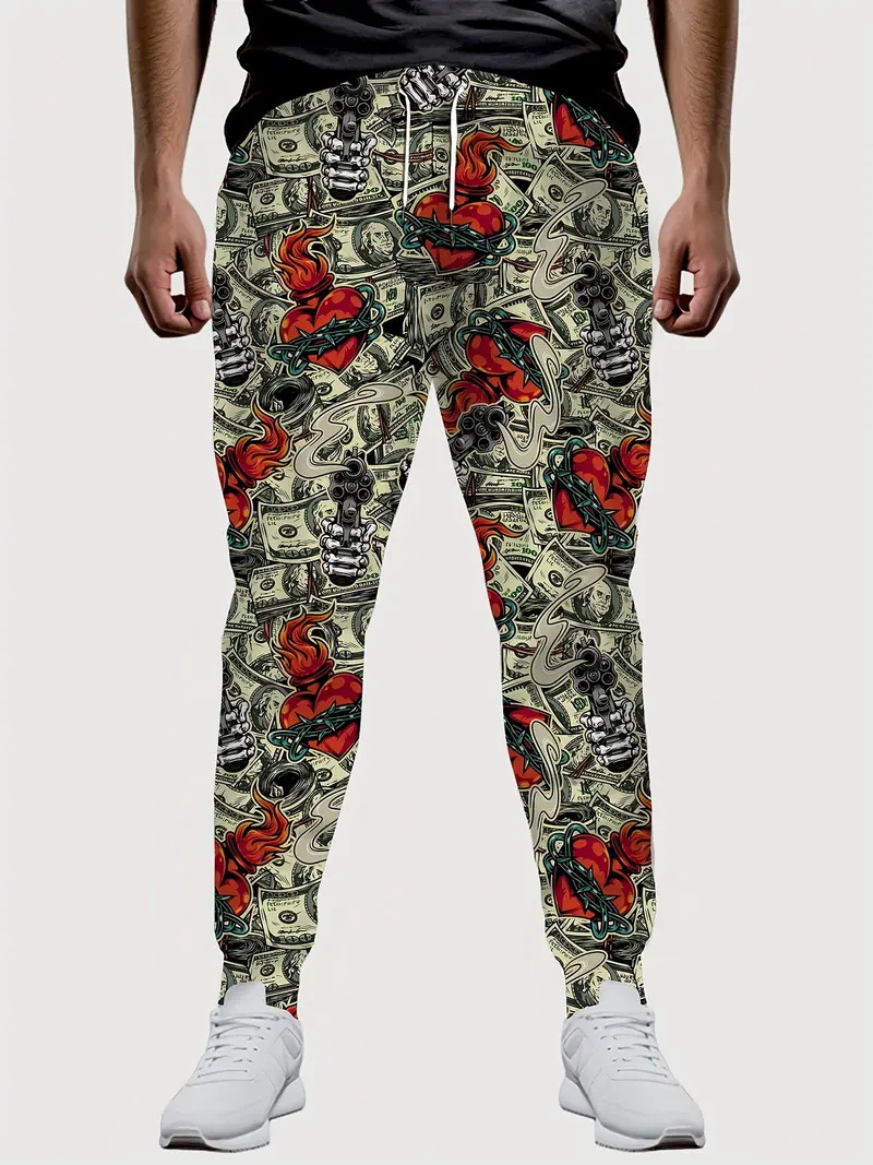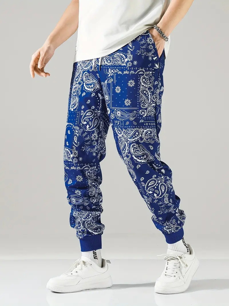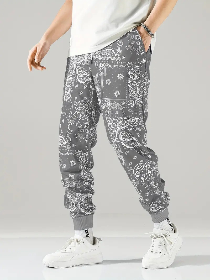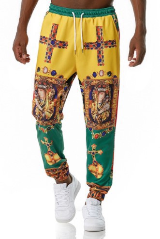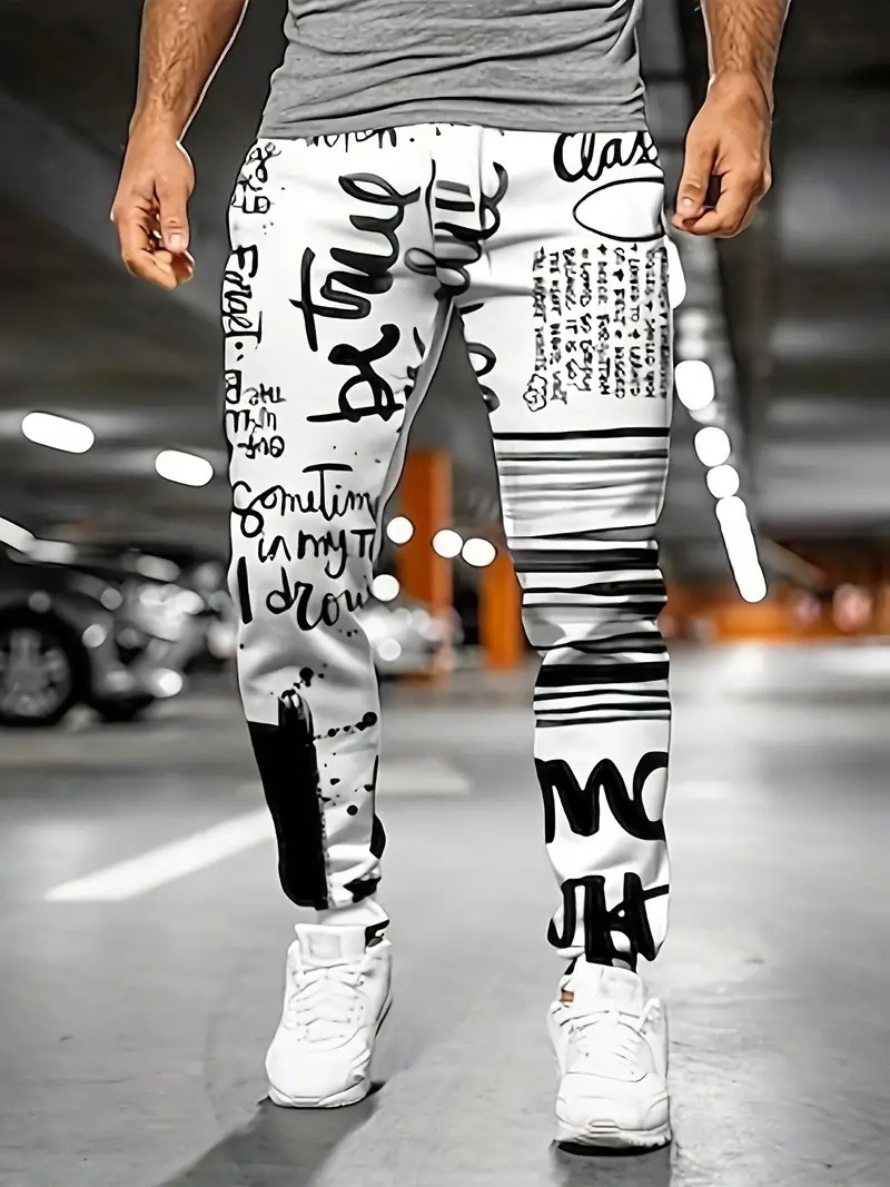 패션 기질 폭발 스포츠 바지 2024 가을 새로운 남성 복고풍 영국 스타일 디지털 인쇄 ML1