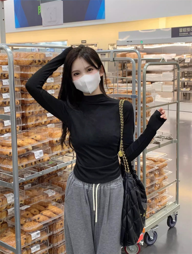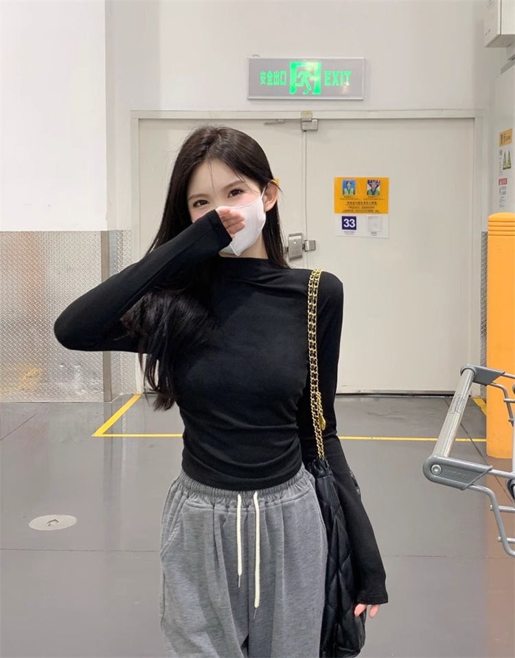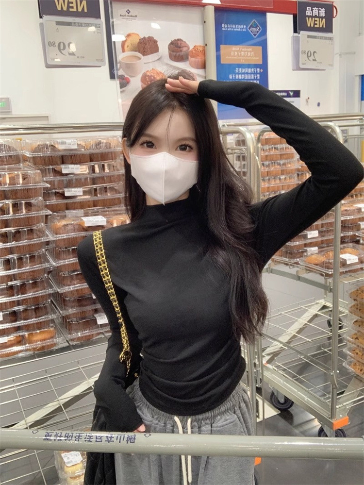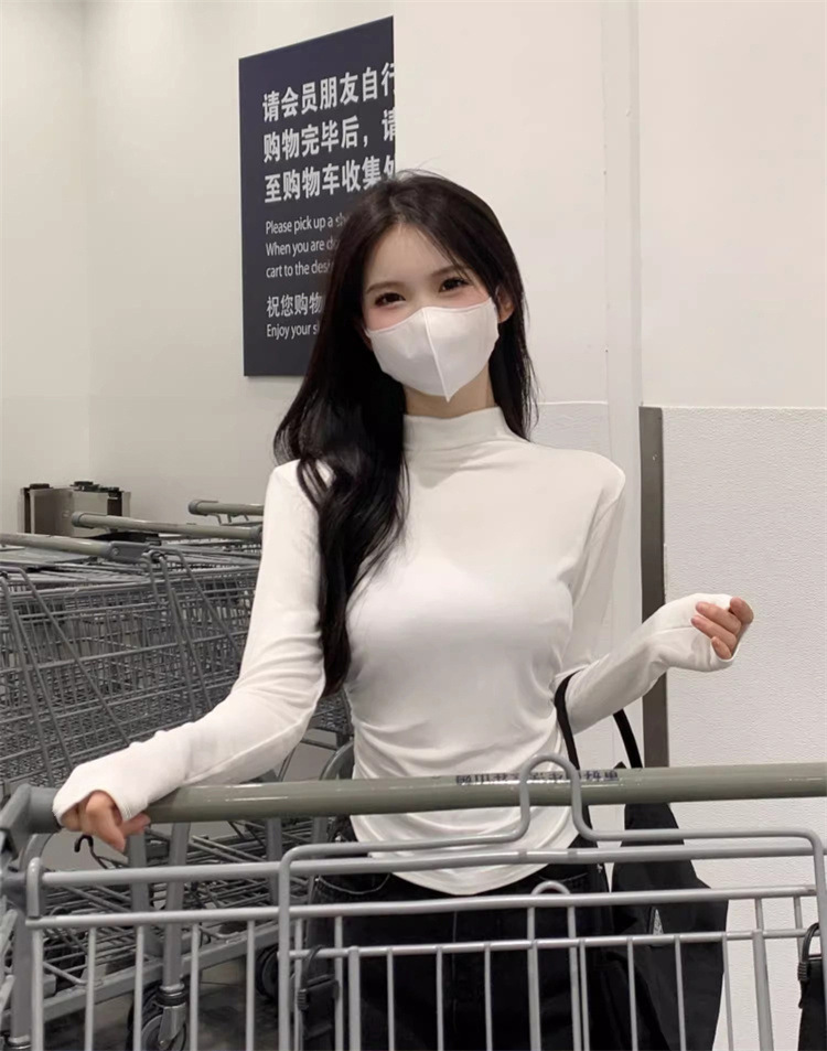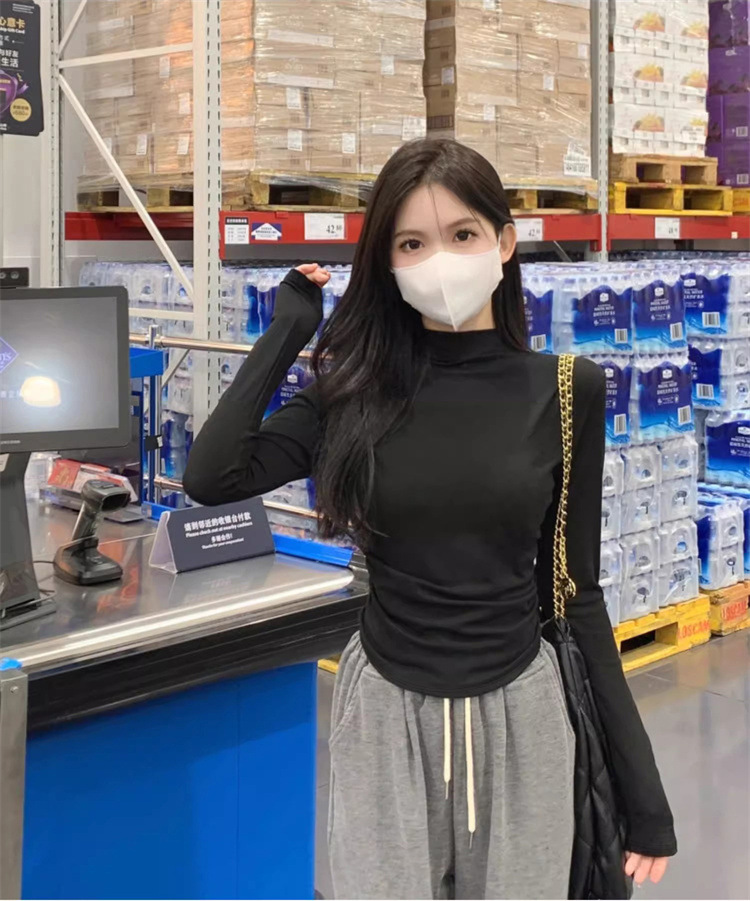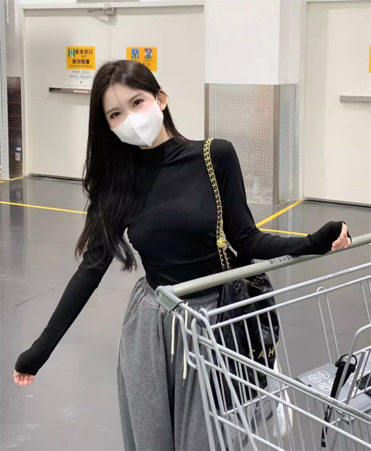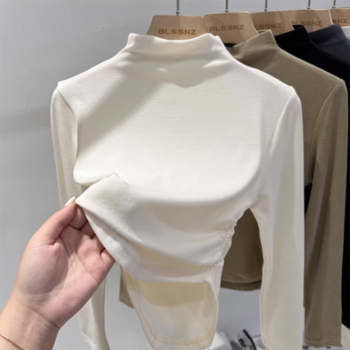 국경 도매 가을과 겨울 스레드 벨벳 세미 하이 칼라 따뜻한 슬림 기질 긴 소매 티셔츠 여성베이스 셔츠스토어 가기